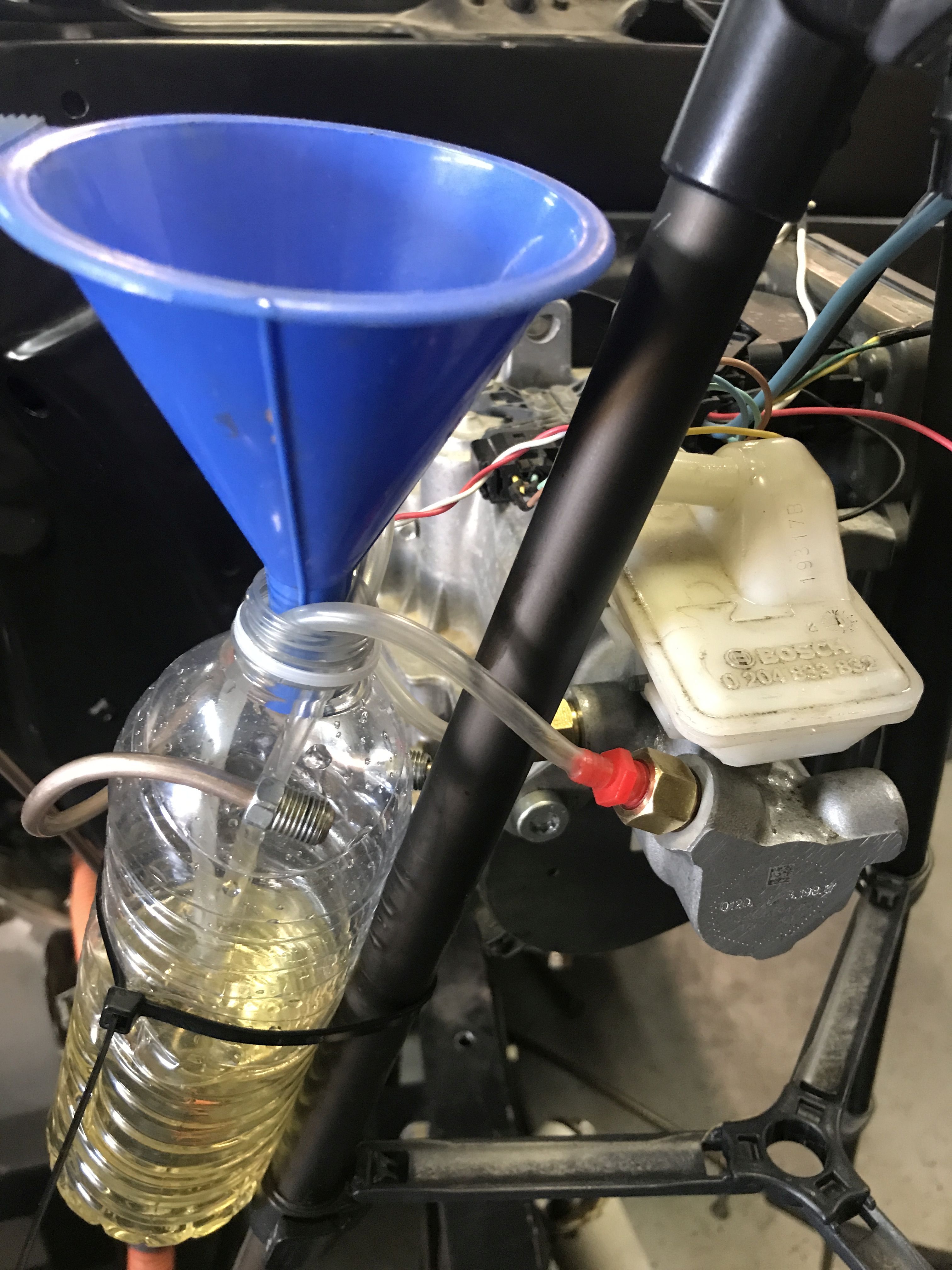 so here's the general idea and you is supposed to do this in a vice, with American style master cylinders, anyway that's where that clear line red fitting kit is from