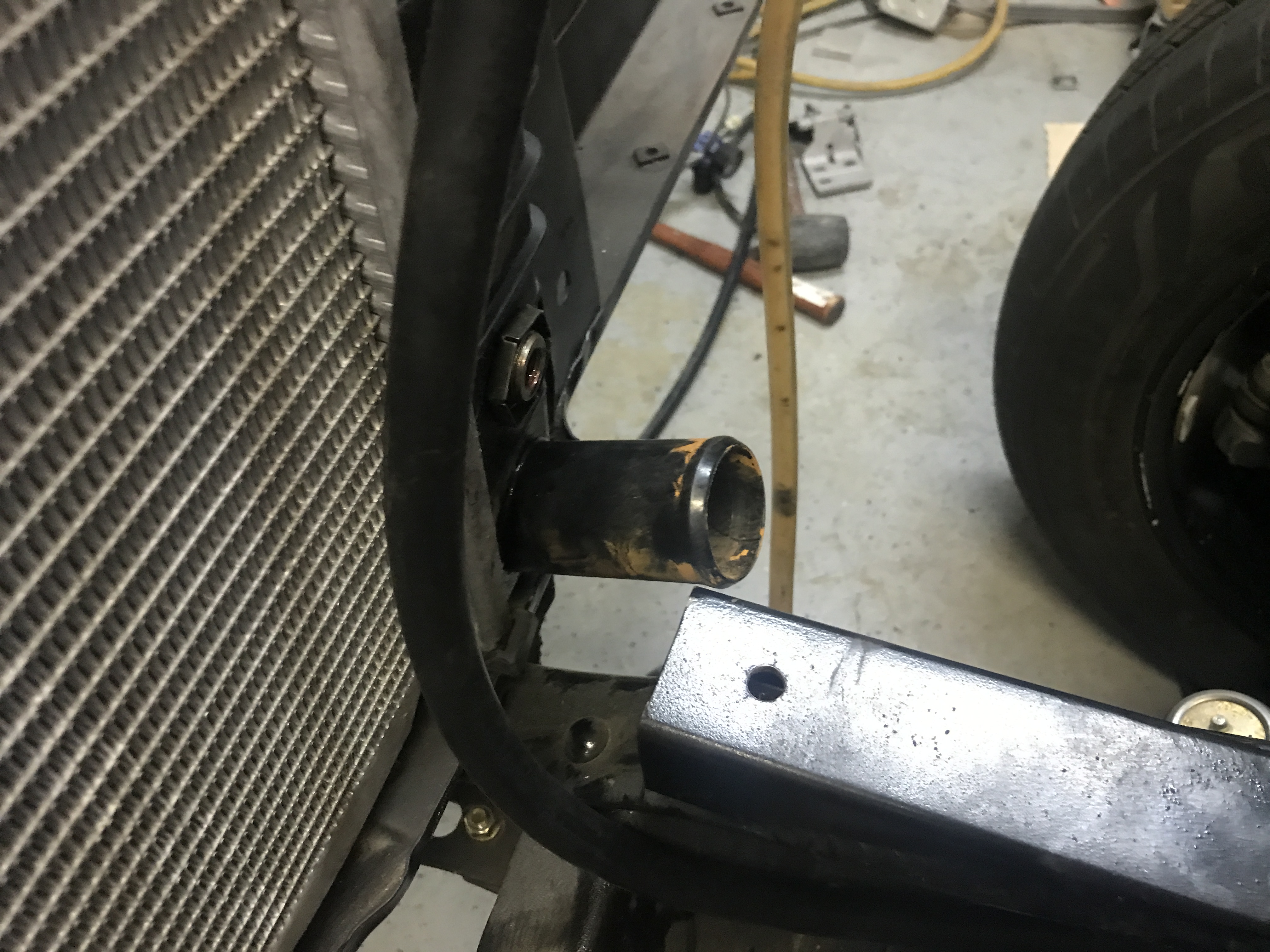 so I decided to replace that radiator with a brand new one, this solved one problem and helped with another, first I went down to a single core cause the old one was to thick being a dual core and never fit perfectly on the bottom and we just can't have that here at Good Enuff Garage