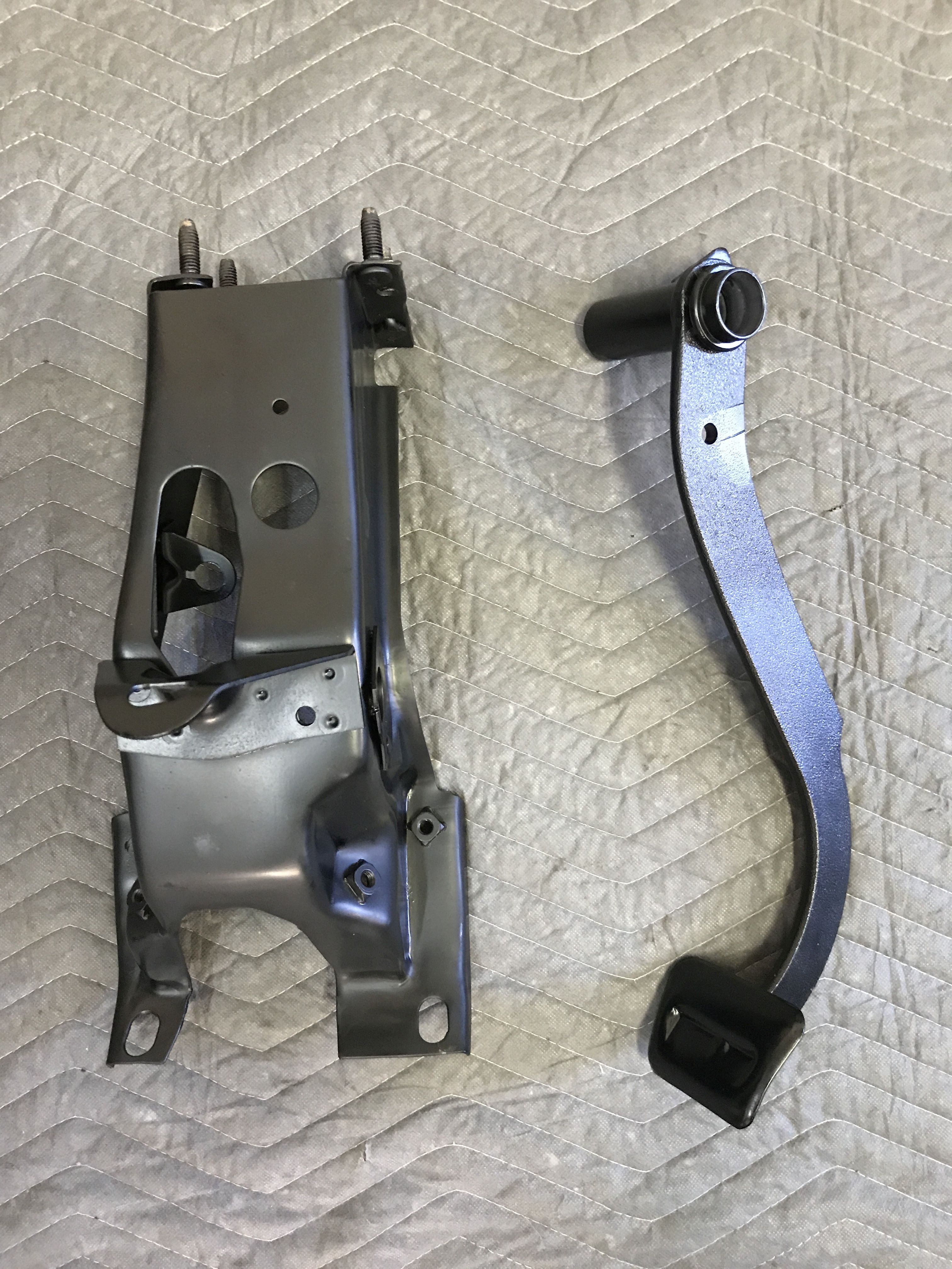 the rod from the actual brake pedal pushes on the bottom of this bracket which then transfers that force to the rod above it and that's the rod that applies pressure on the actual brake booster, my buddy Patrick who is way smarter than me, figured out how much it multiplies the force by measuring stuff and pressing buttons on a calculator and such