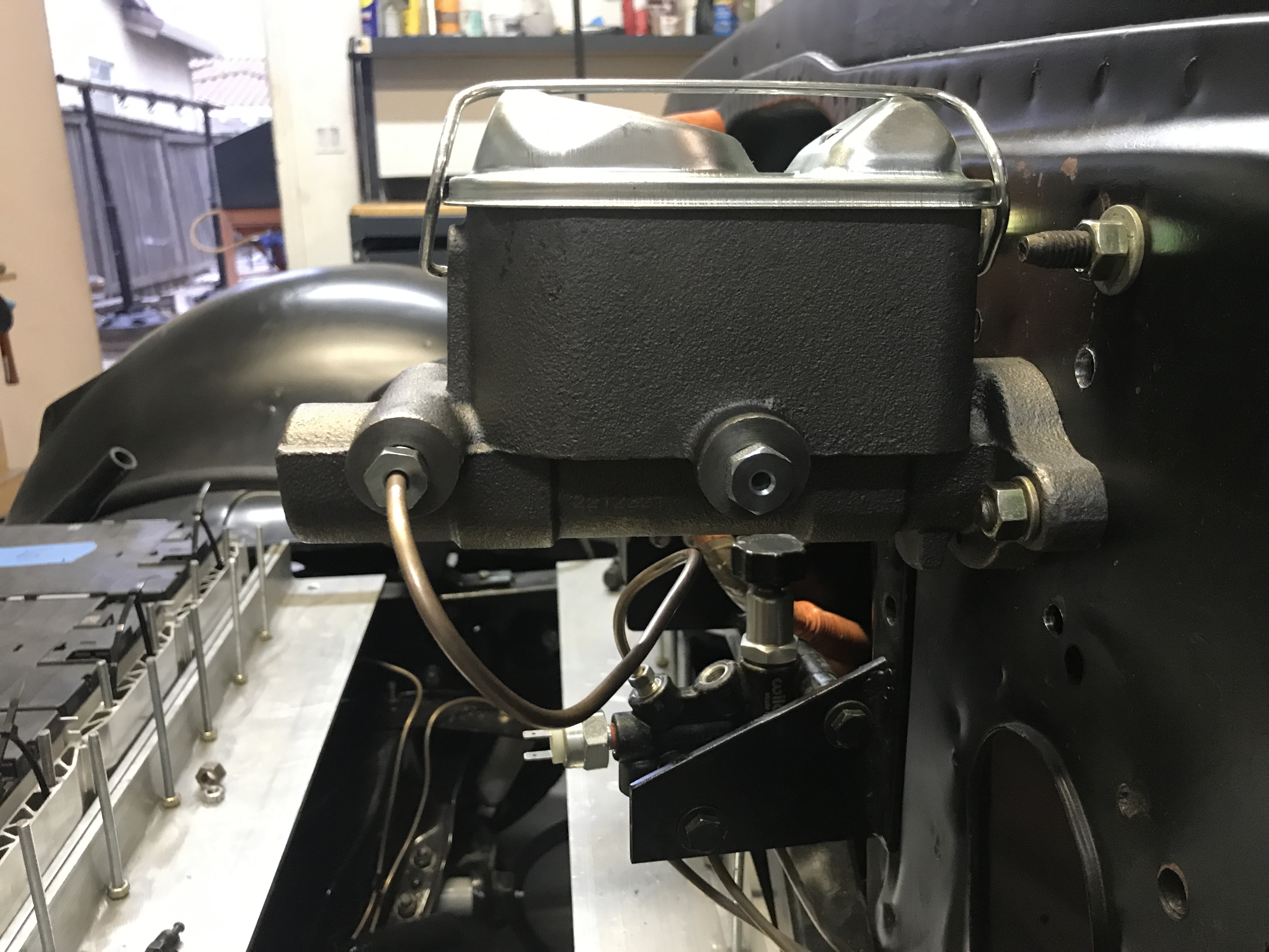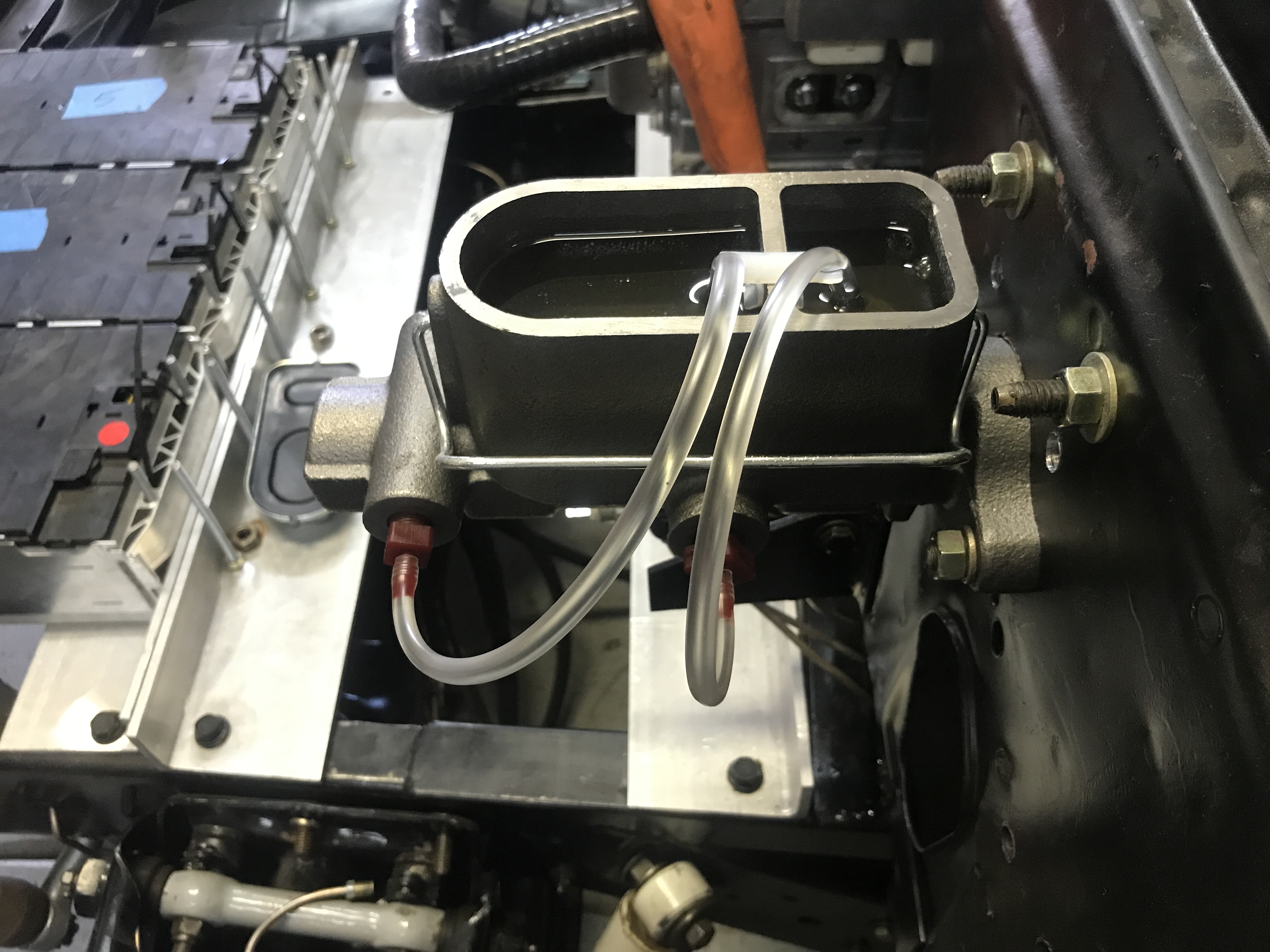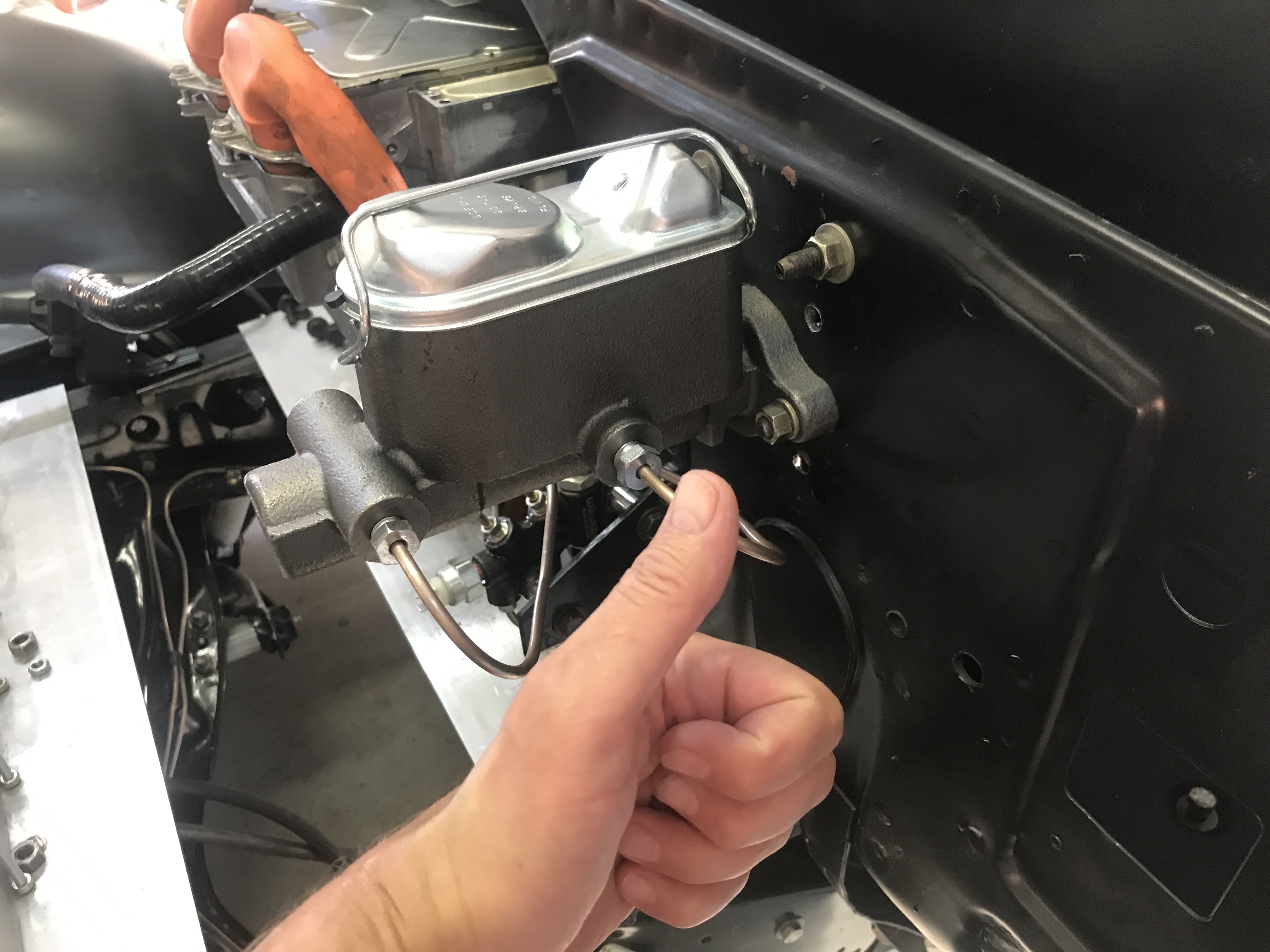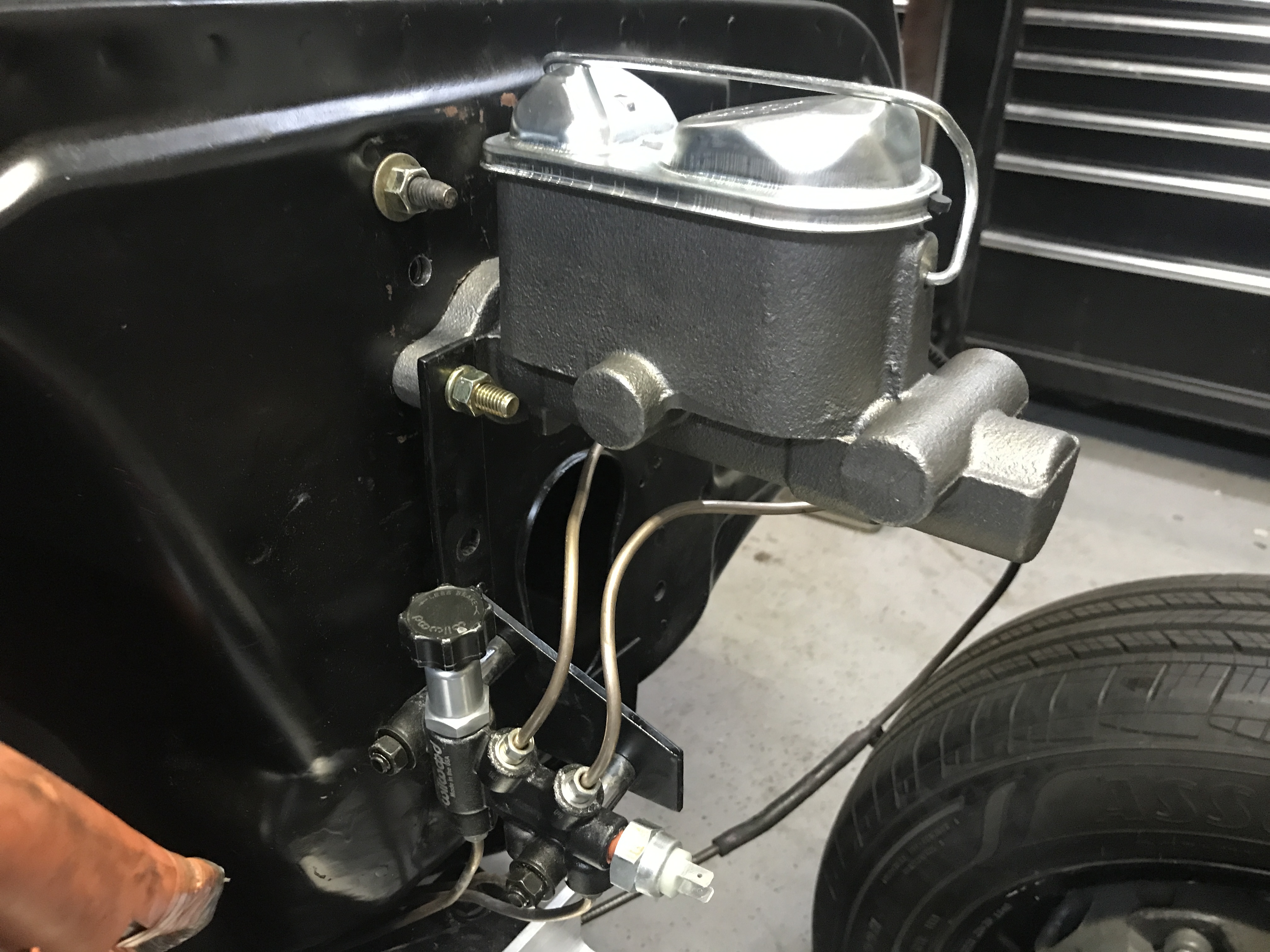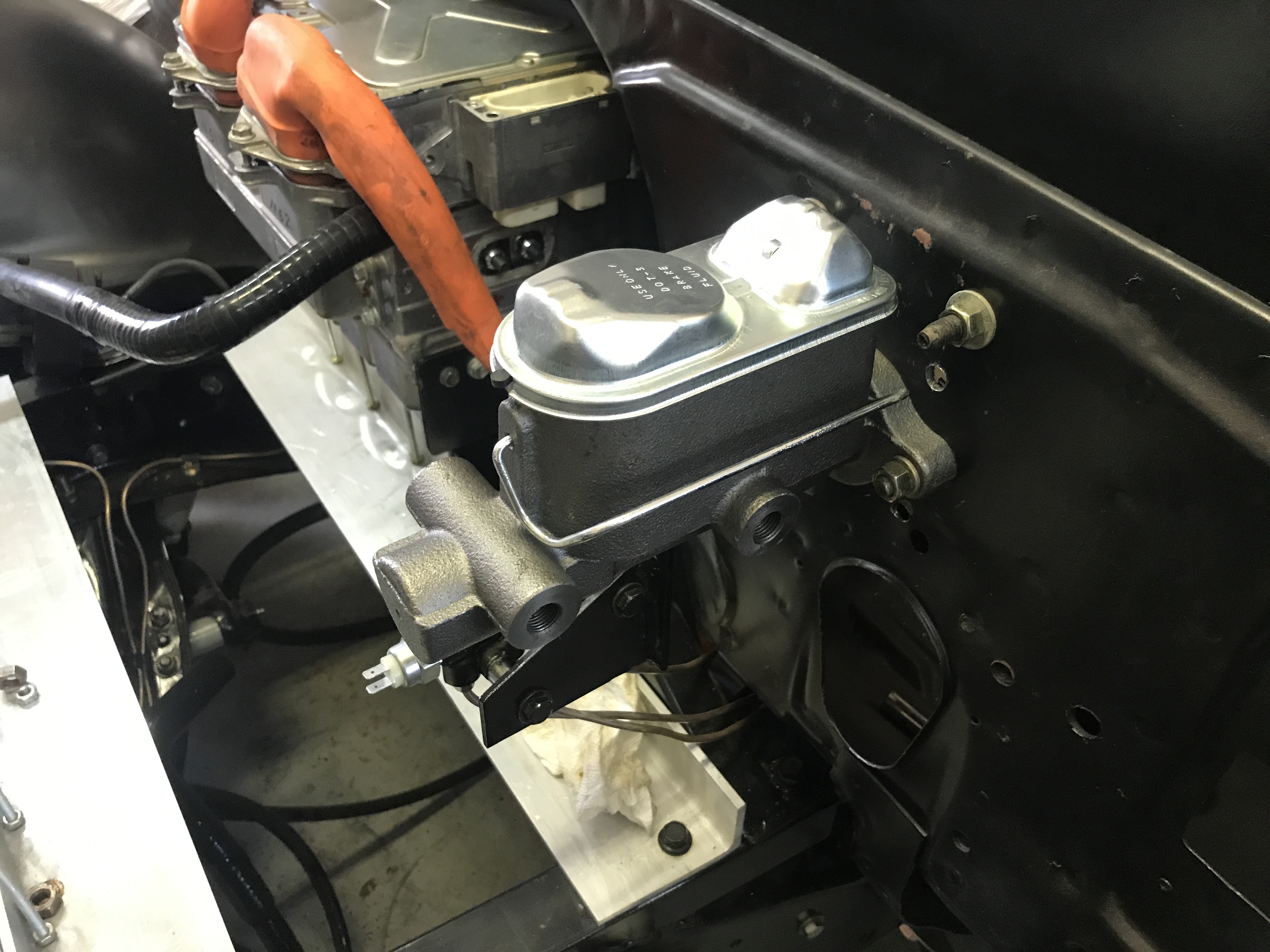 so since I first converted from factory GM stock drum in the front / drum in the rear brakes to factory GM stock disc in the front / drum in the rear brakes I decided to simply finish that conversion in stock fashion, so I yanked the Tesla master cylinder / iBooster in favor of the OEM GM disc/drum master cylinder, but wait it gets worse, I had to go with the manual one since we no longer have vacuum, but that's ok that was an actual factory option in 1971