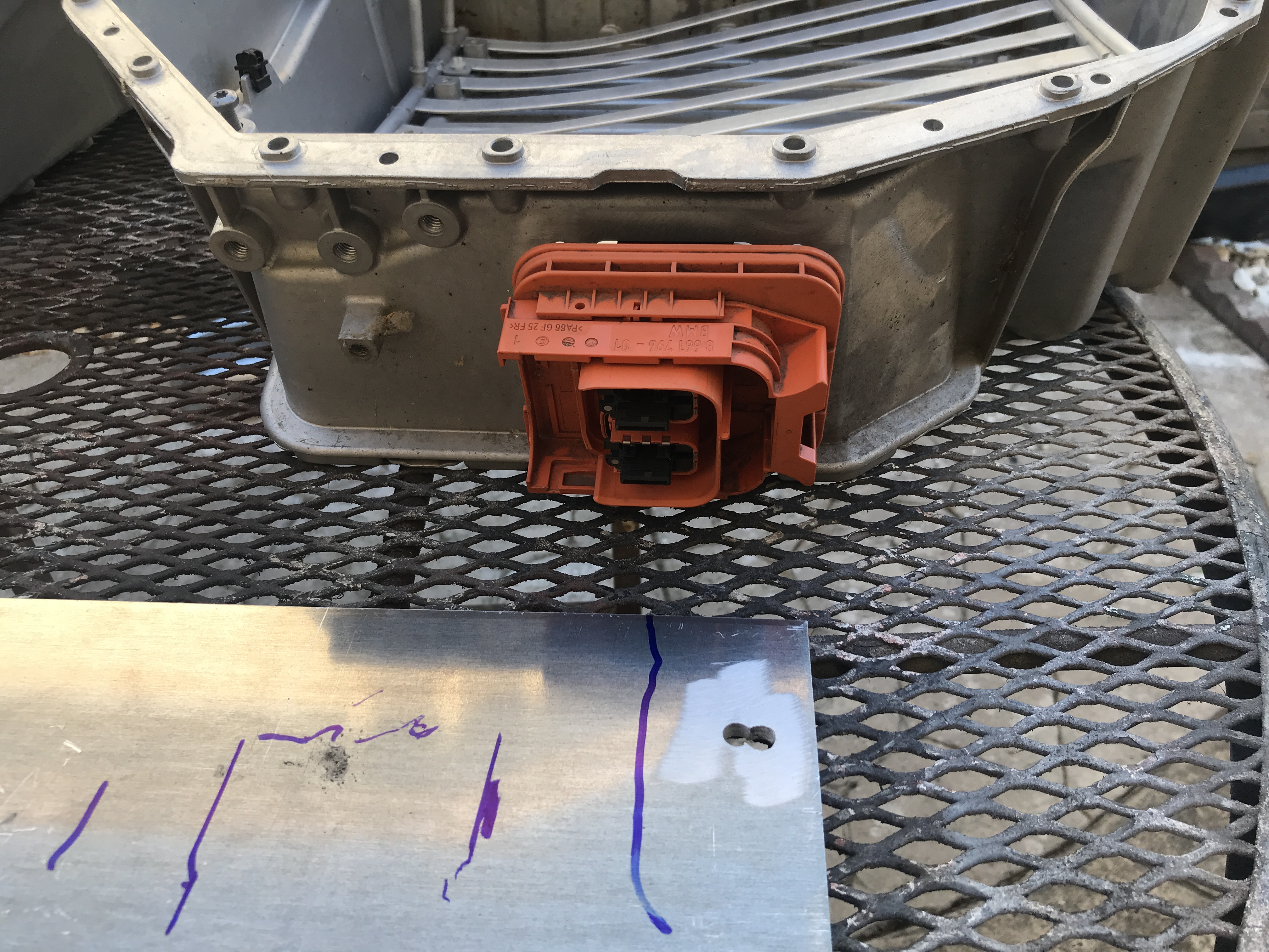 so this is the empty OEM BMW battery box that's what my batteries came out of, and that's where the orange connector is from