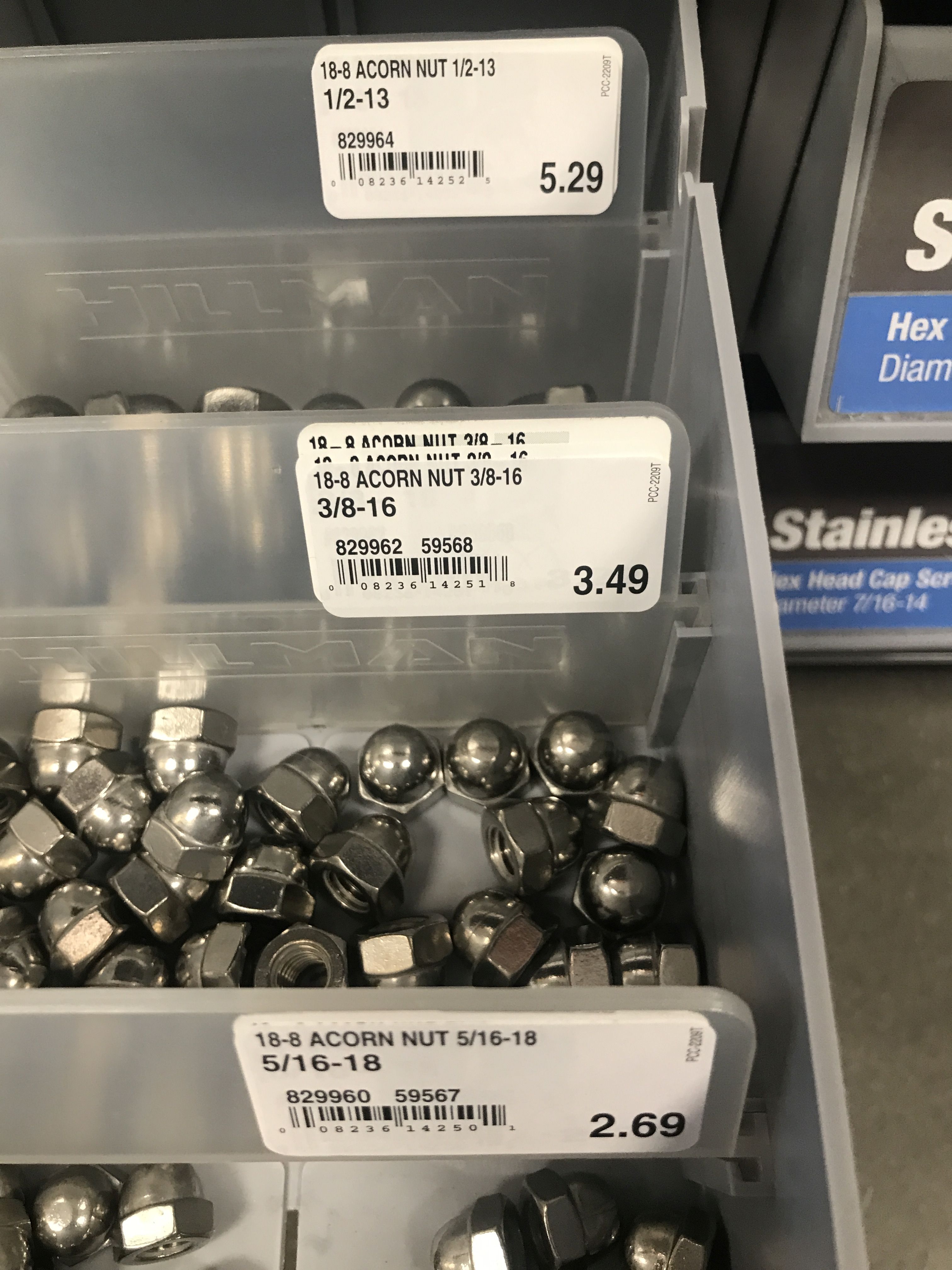 to quote our astute colleague Mr. Damien Maguire "those eagle eyed amongst you may notice" the front two 7/16" studs are missing their acorn nuts, well, the struggle is real, take a look below at what my local ACE Hardware store carries (or should I say does NOT carry), they seriously jump from 3/8" to 1/2" you can't make this stuff up folks: