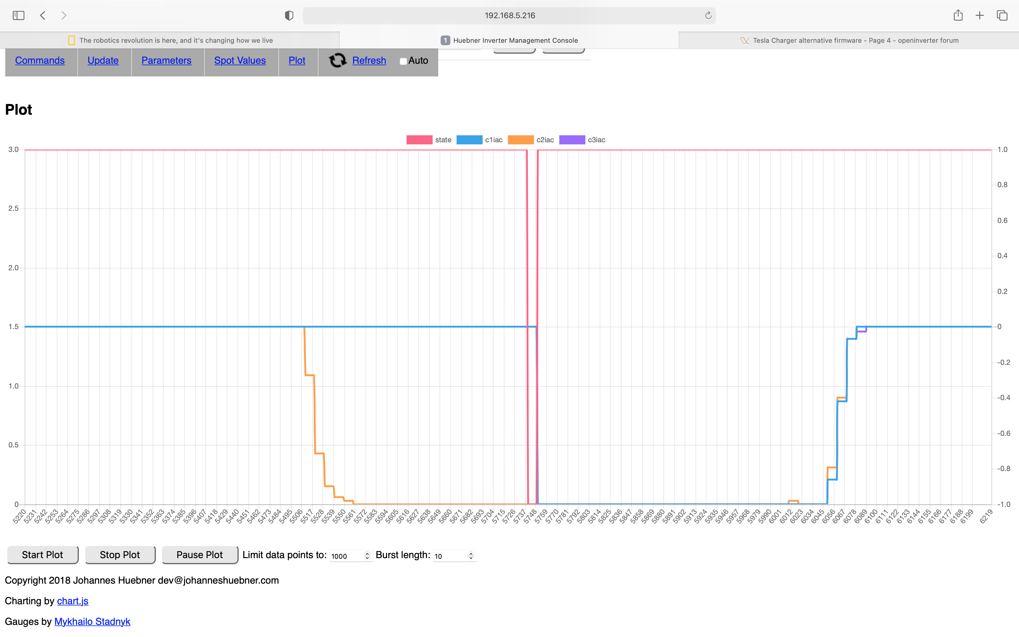 I hope Bryson gets the plot running so we can hunt the glitch down. I'm suspecting one of the chargers raises an error flag. Anyone know the conditions that raise the error bit?