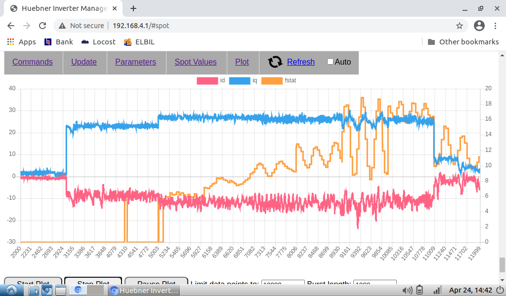 When looking at fstat in the first plot below, one can clearly see the area where it starts to oscillate. The oscillation also shows in the Iq and Id currents. In the second plot, very obvious effect on Iq during oscillation.