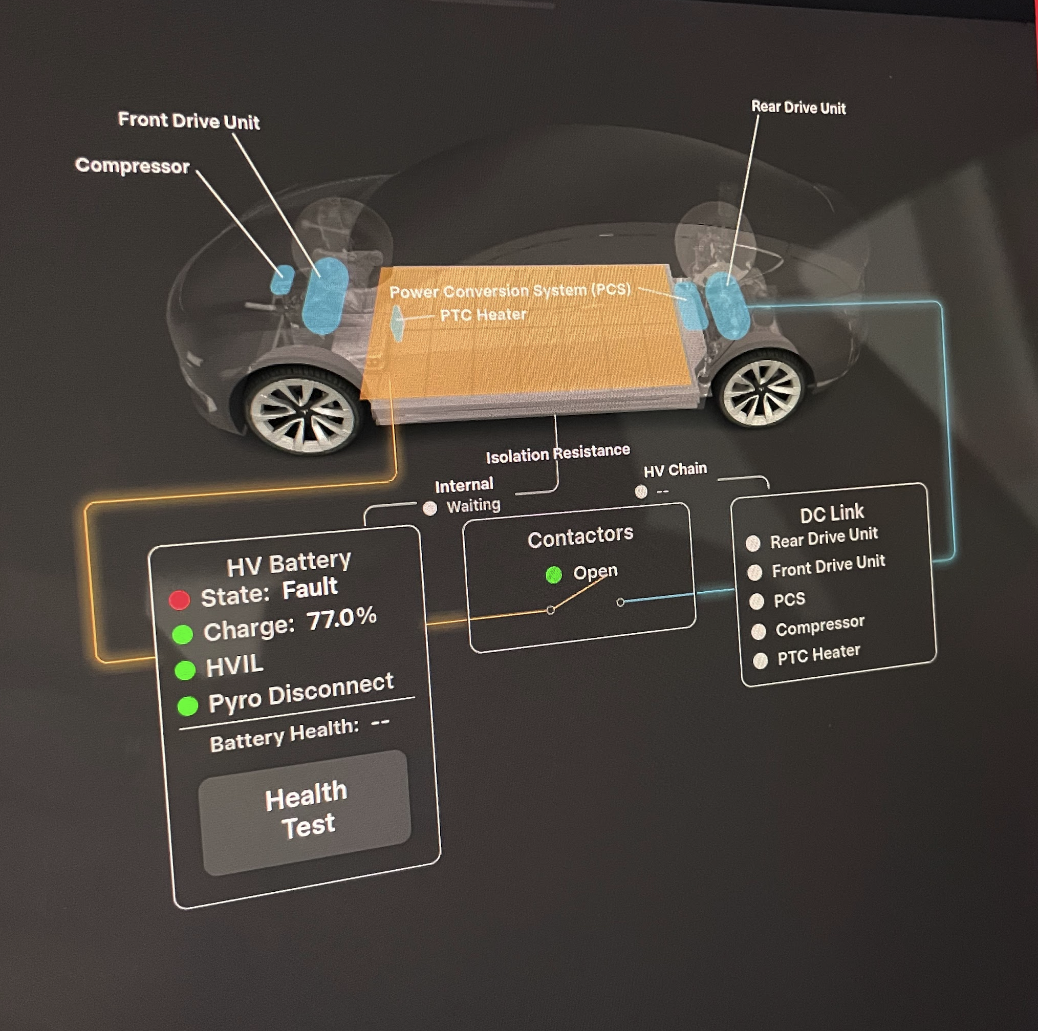 Anyway, the surprisingly easy fix was to press the brake pedal and then the HV battery was back. And I also stopped at a supercharger today, and everything is fine with the fast charging contactors. Phew :)