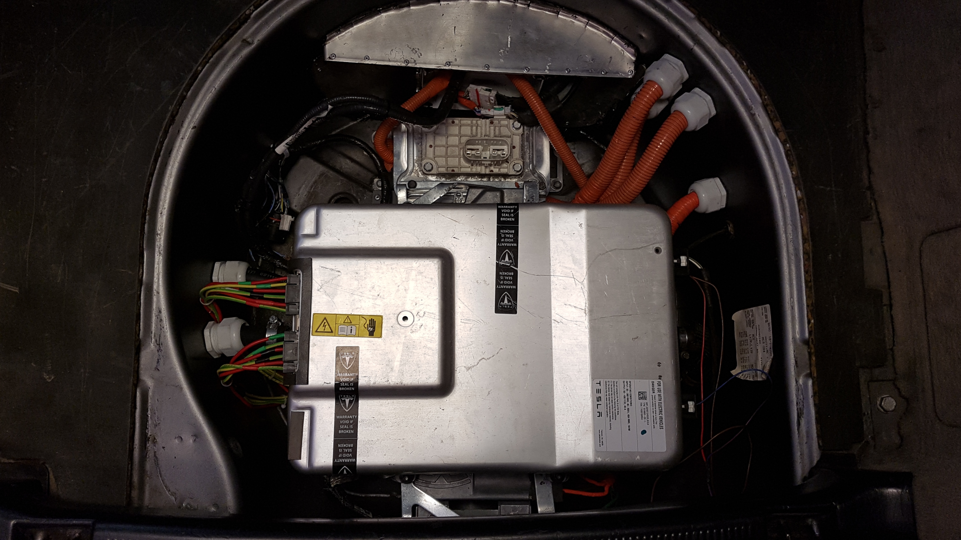 Porsche 986 powered by a Tesla large drive unit. Backwards. Build documented here and Instagram @tesla_porsche here.