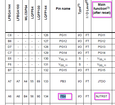 Edit2: In https://www.keil.com/dd/docs/datashts/s ... f10xxx.pdf Table 33 they explain that "freeing" the PB4 is confibured in SWJ_CFG[2:0]. The clara application seems to configure this in main() by gpio_primary_remap(AFIO_MAPR_SWJ_CFG_JTAG_OFF_SW_ON, ...) Could this be taken-over into the bootloader?