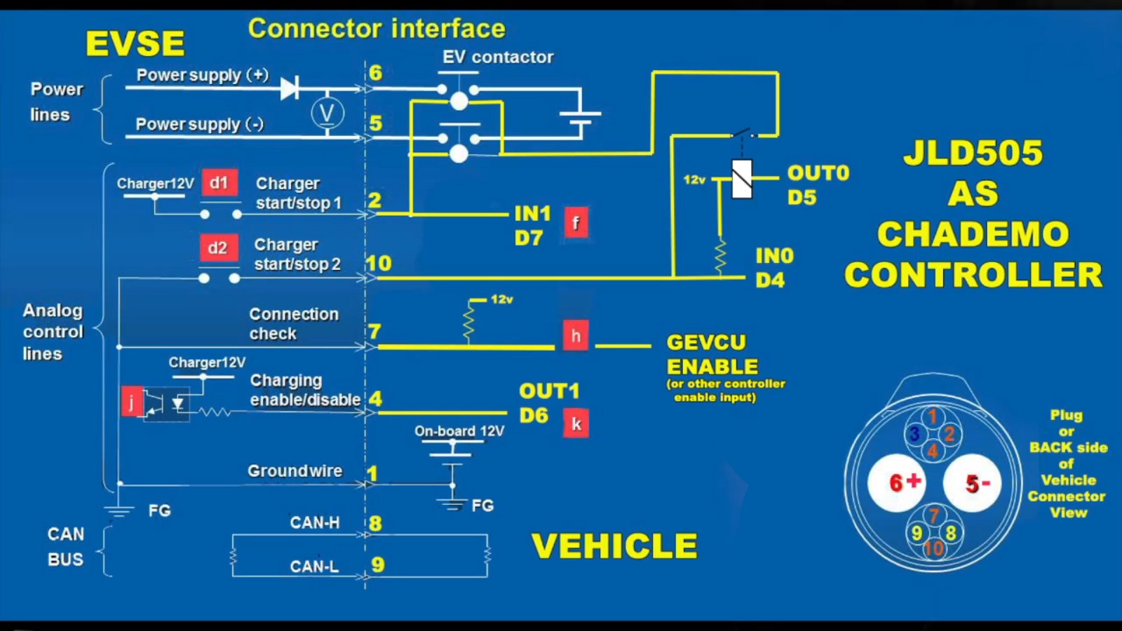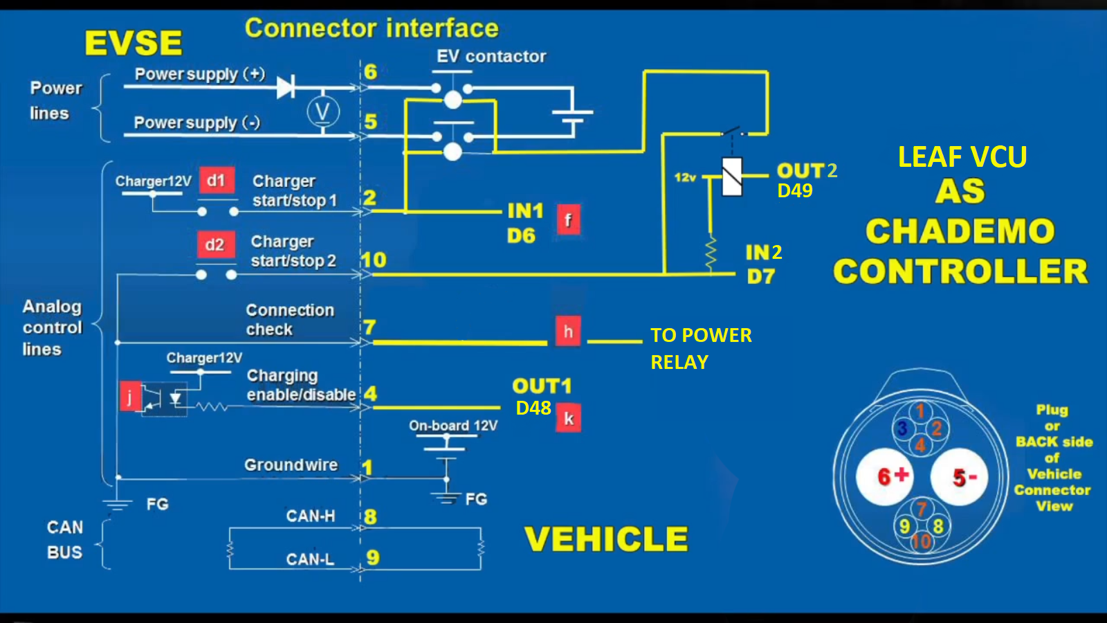 -Vehicle connections via the 12way connector. Chademo signals via the 20 way.