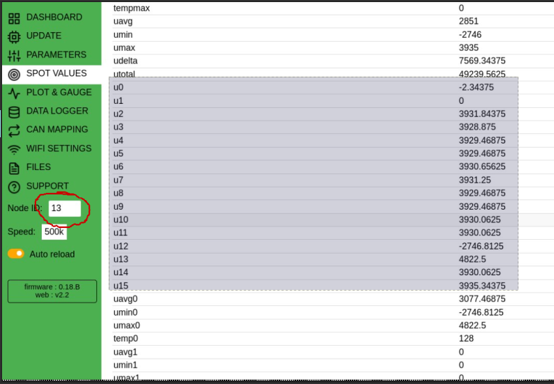 However, after flashing, something strange started happening with BMS2 (board #3) readings. Some cell voltages randomly jump to 0 or ridiculous values.