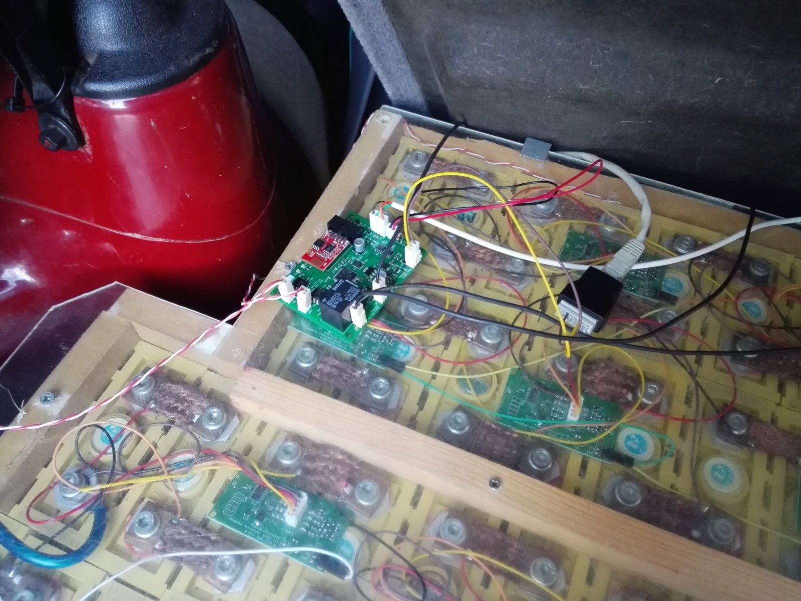 Finally I got to work on the BMS again. I connected it to the 99 cells in the back and also connected fuel gauge, charger (inverter) and a current sensor. All works a treat.