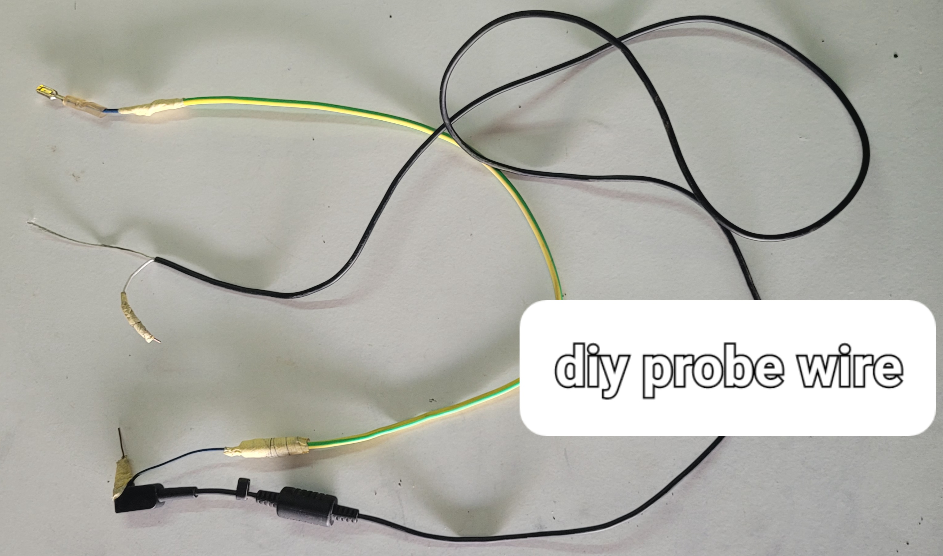 First I made a probing wire since I didn't have one. I used an old laptop cable. I've attached pictures below. The white wire showing from the black cable is my positive and the other longer wire is my negative. For the test points I have a green and yellow cable which is my negative and the shorter head is my positive.