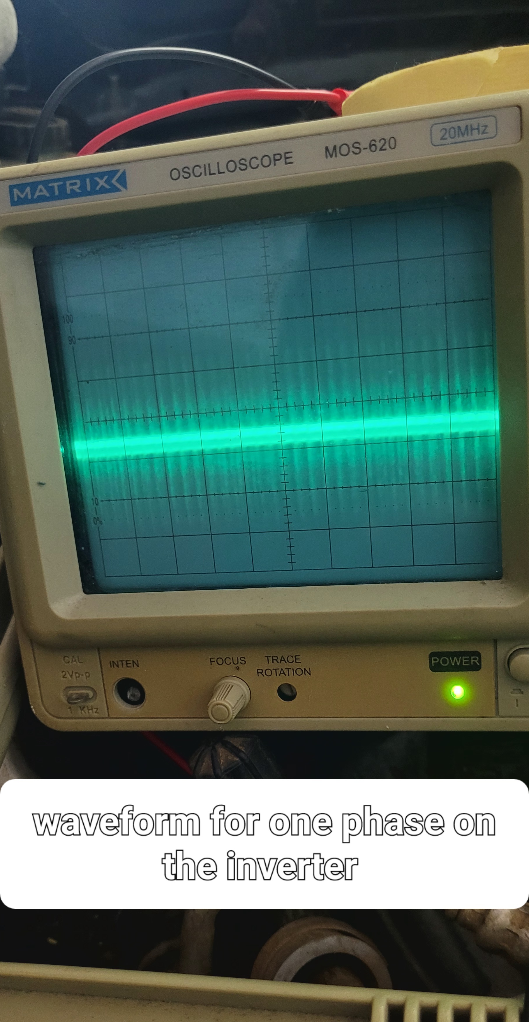 - Now verify that you see the same perfect rectangular wave form on the 3 inverter phase outputs