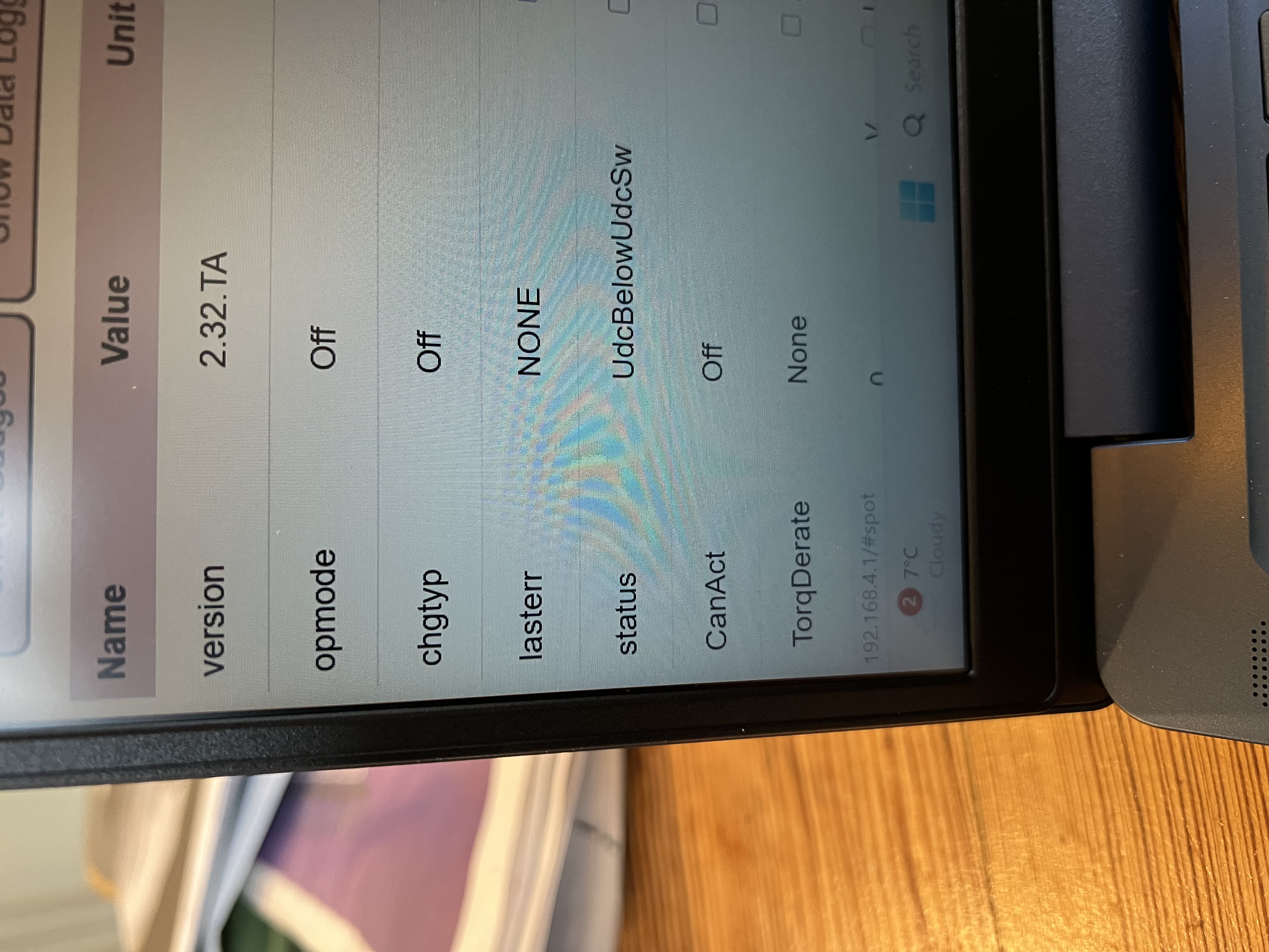 If the issues remains like it does need to confirm what inverter Greg has in his rabbit and what firmware was used as a base for testing on it (yes I did write it but its a while ago).