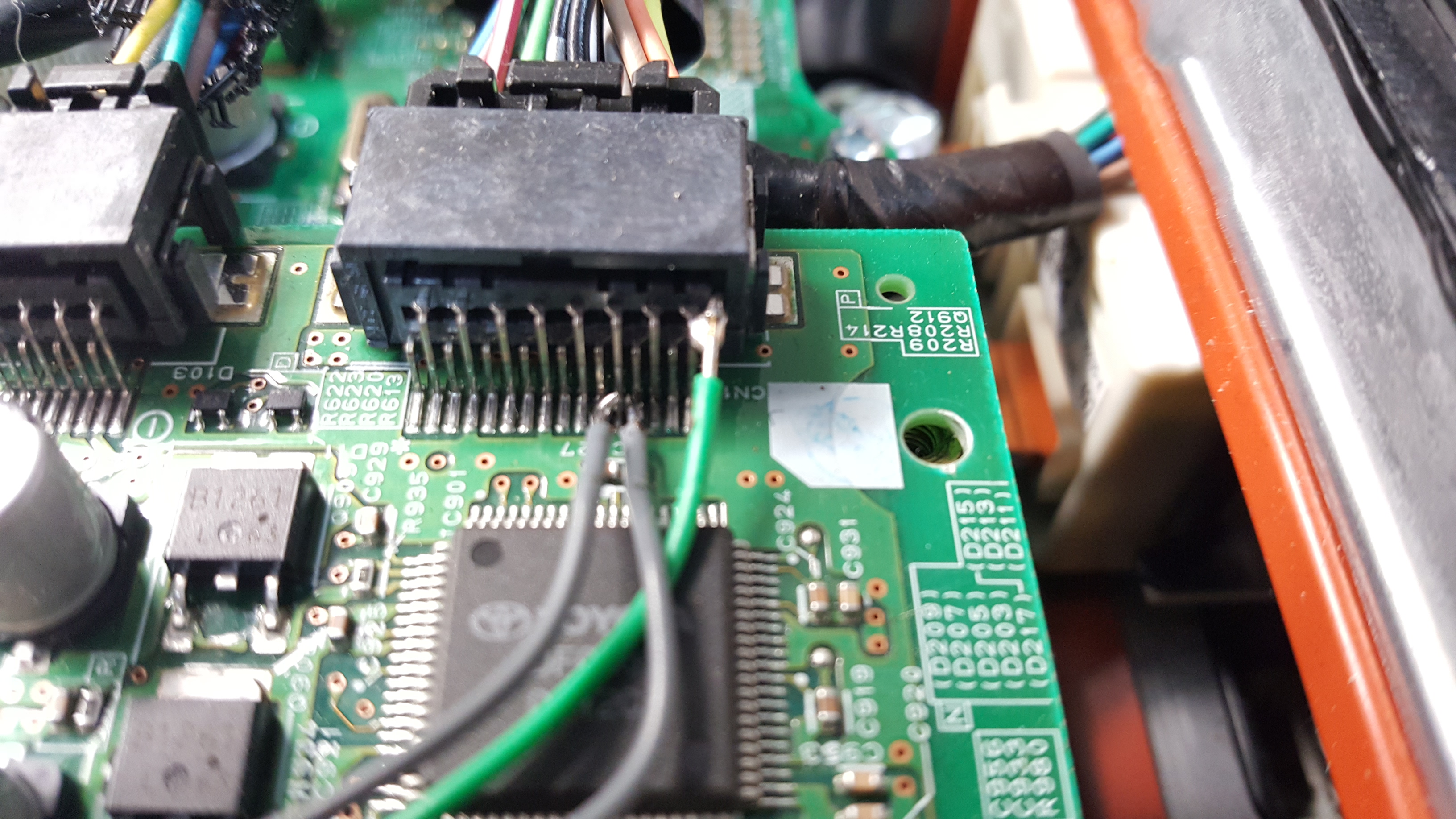 Figured I'd forget in the morning so grabbed my notes. Of course my pos scanner won't work with Linux so snapped a few photos. Hope it helps. In the photo you can see the two grey wires carrying the pwm signal and the green wire is +12v. iirc you may need to bypass a transistor on the back of the board to enable the booster. I'll try and get a few better pictures.