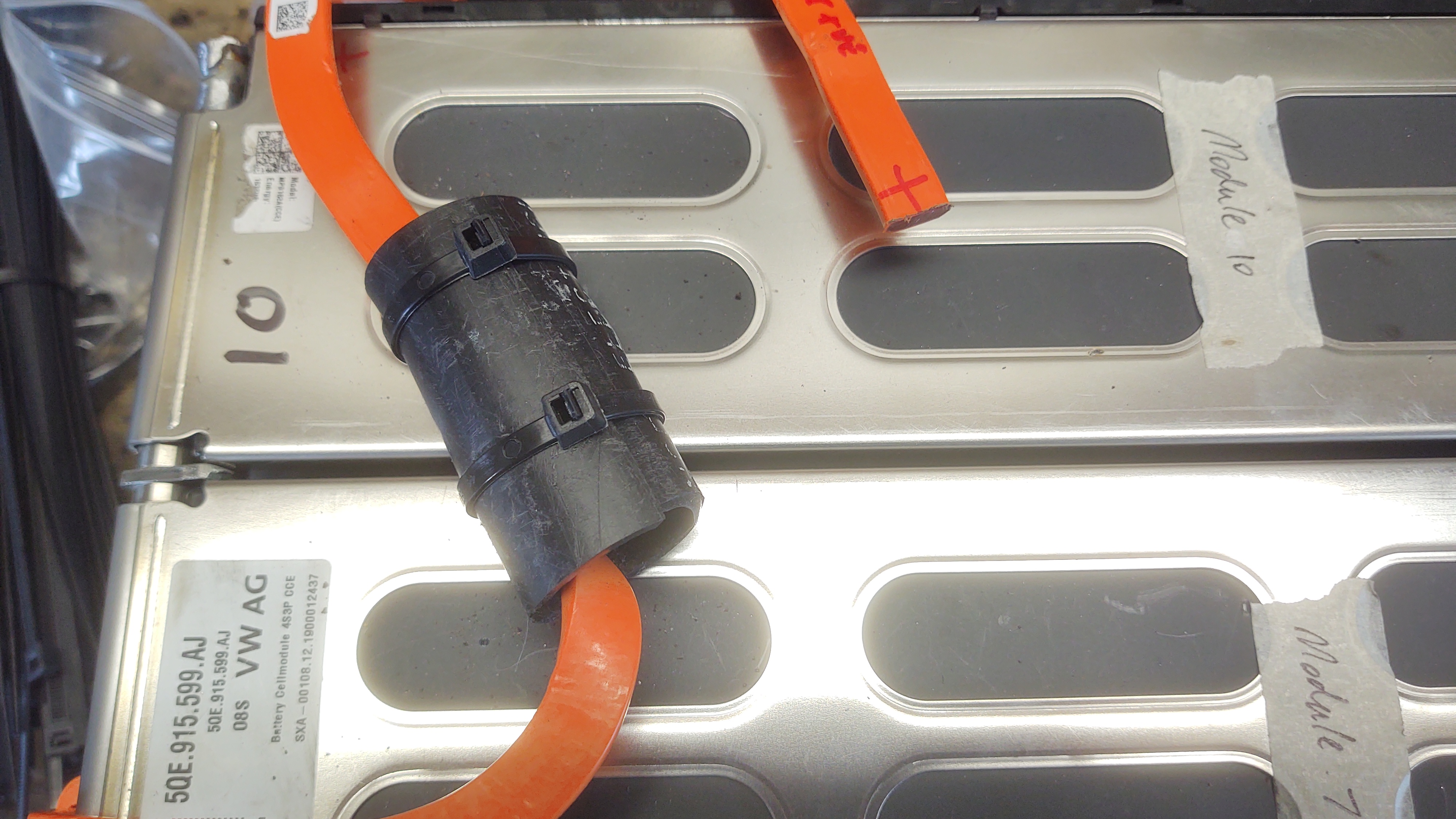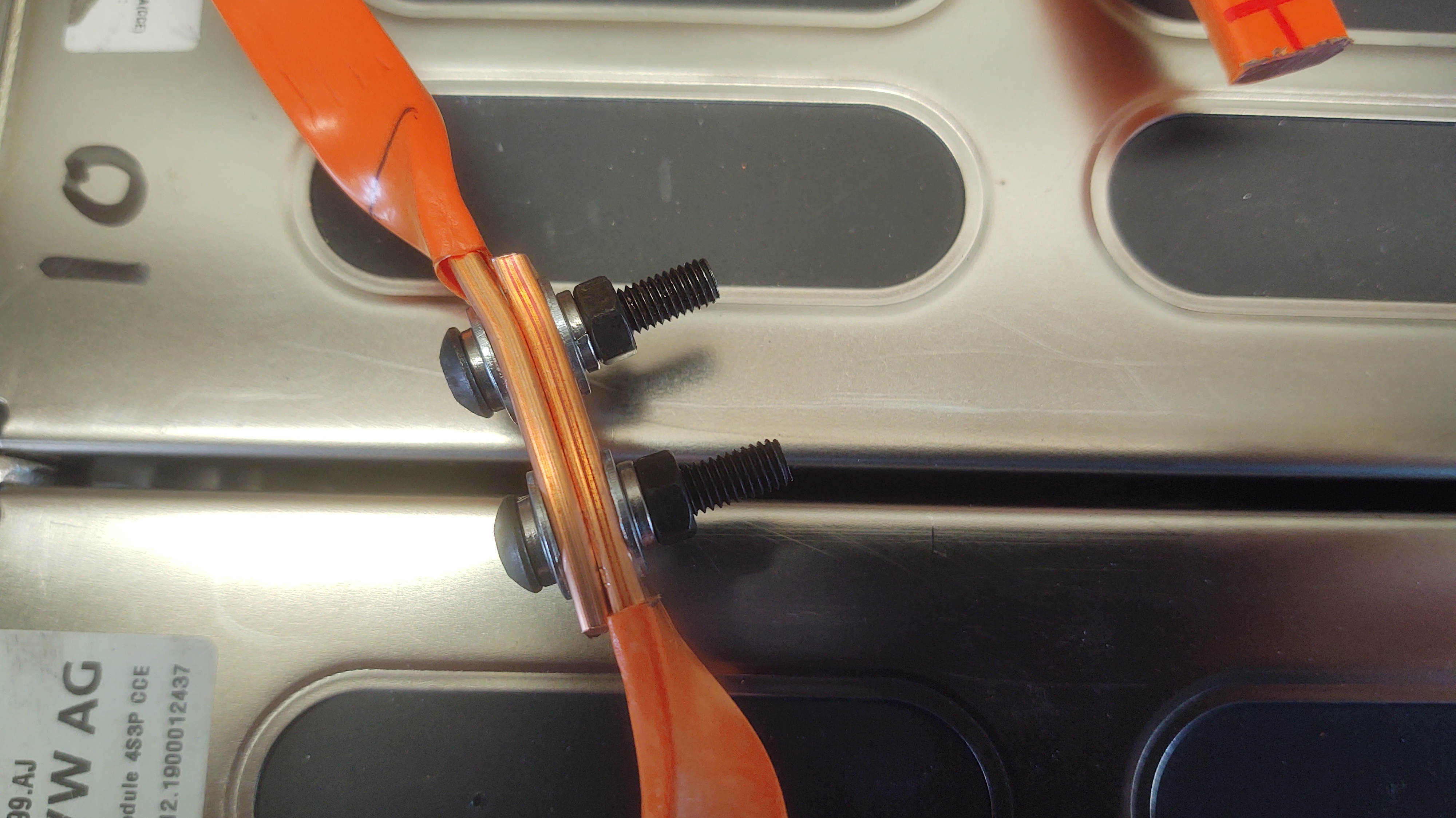 I was going to make up internal links using 25mm2 or 40mm2 cable but figured it would be easier to reuse the original connections. The walls of the box will be close to the terminals on the modules and the original connections are designed to fit in a tight space.
