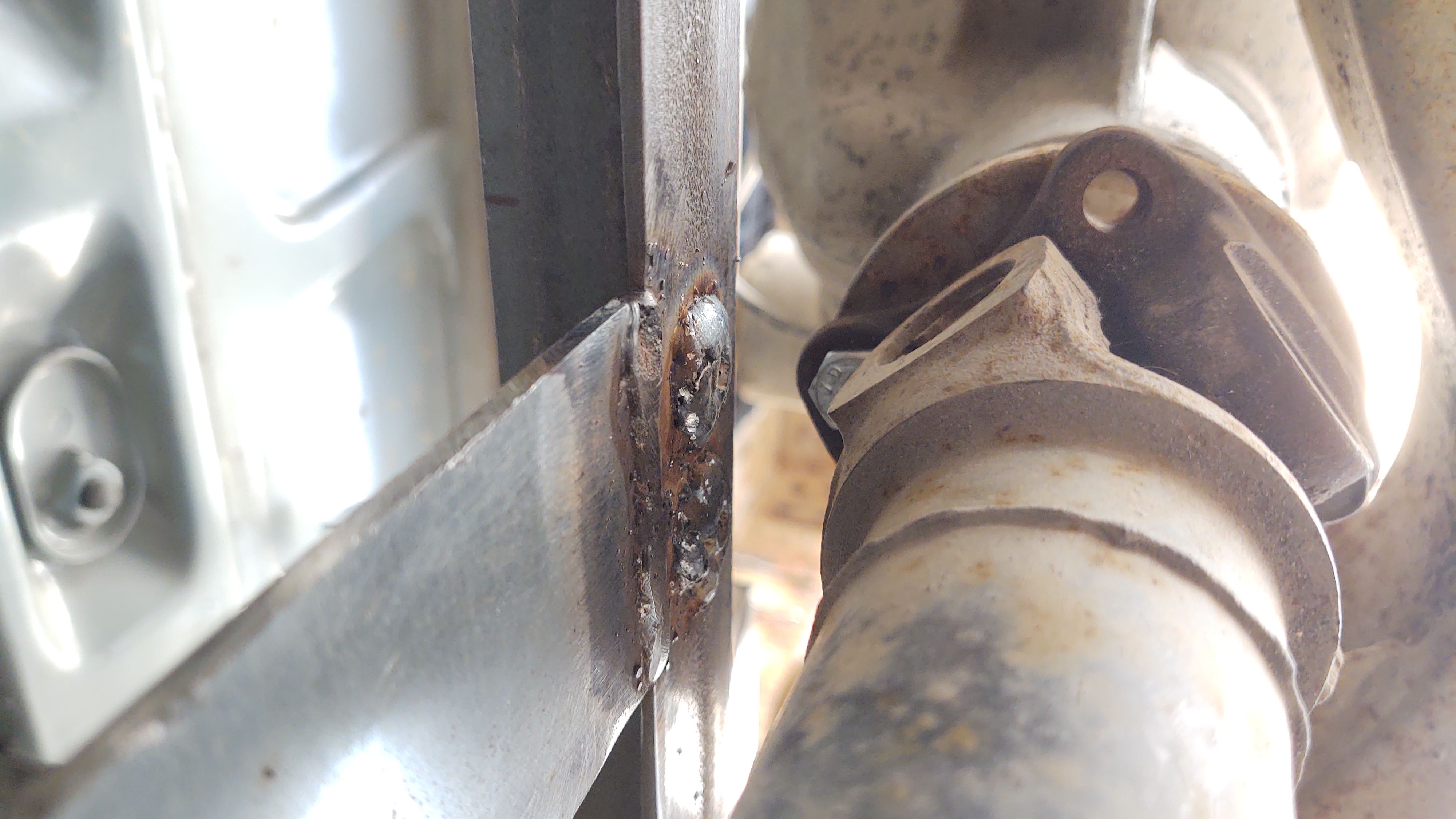 This means every time I think I have the shape sorted I realise I need to change something. On Sunday I finally I got it to the point where I was ready for a trial fit once the uprights were welded in. I lowered the rear subframe, secured it in place and found the bottom was a bit too close to the propshaft.