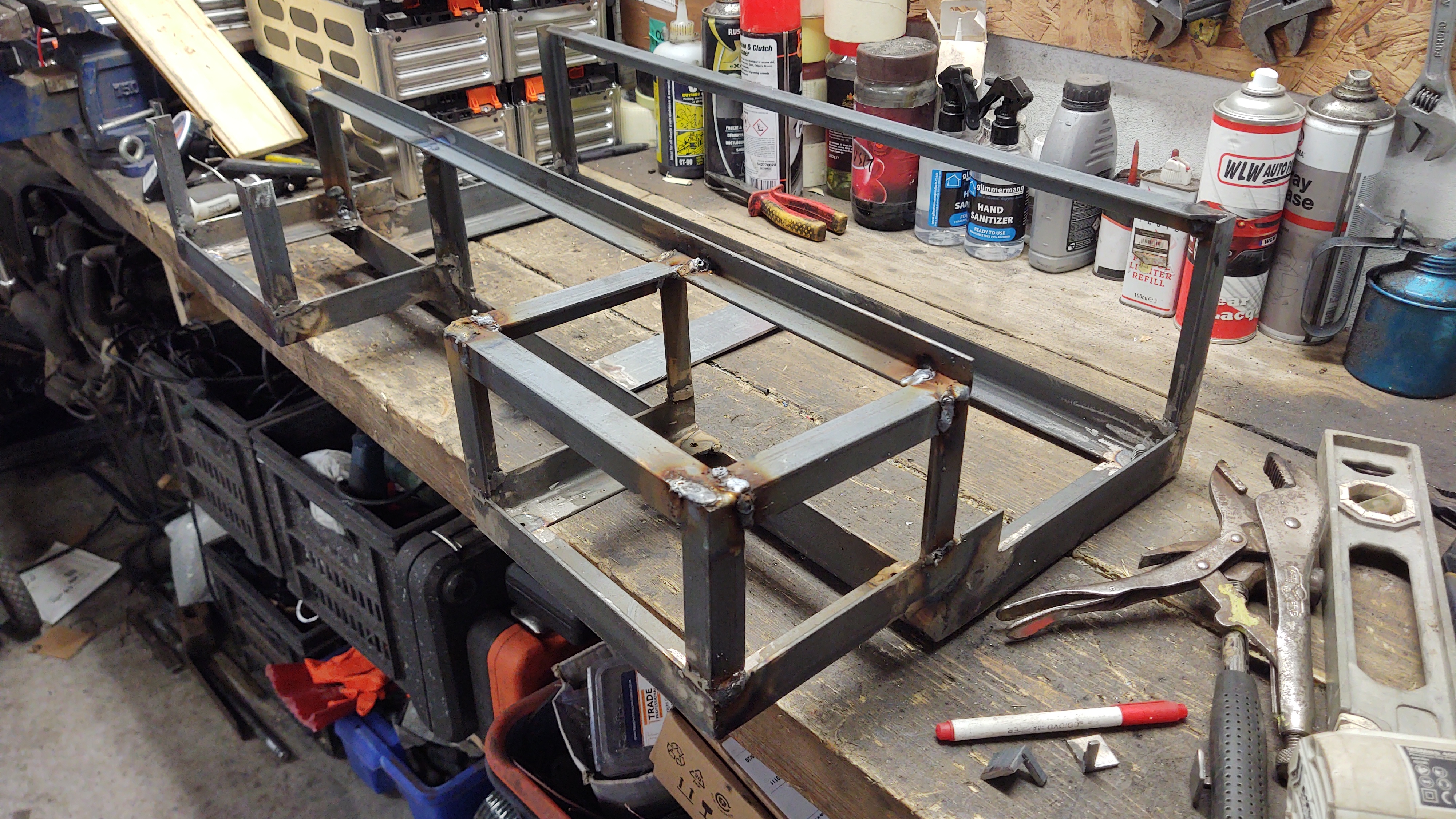 I'm trying to figure out where to place stuff under the bonnet now and have started with a frame made from angle steel.