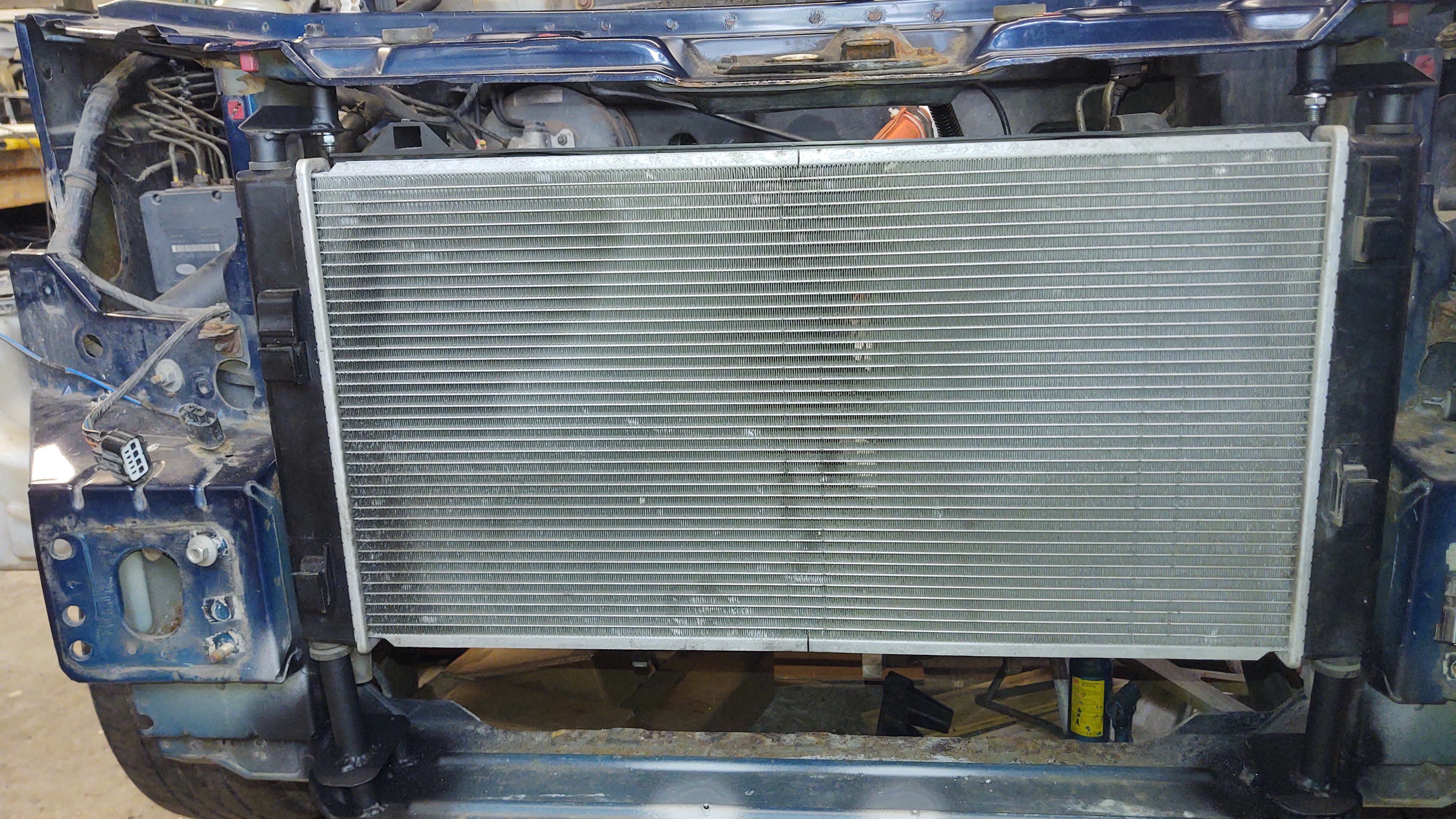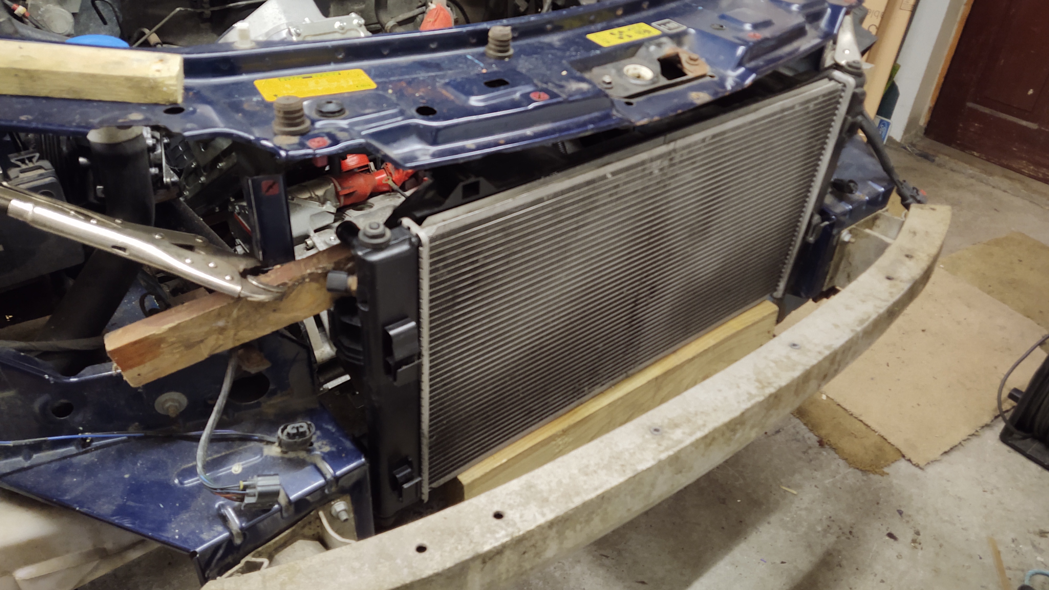 I figured it best to install the radiator first as it has a fixed location and other stuff will have to work around it. I decided to use the Leaf rad as it is slimmer than the Freelander Rad and Leaf hoses and pumps are made for it.