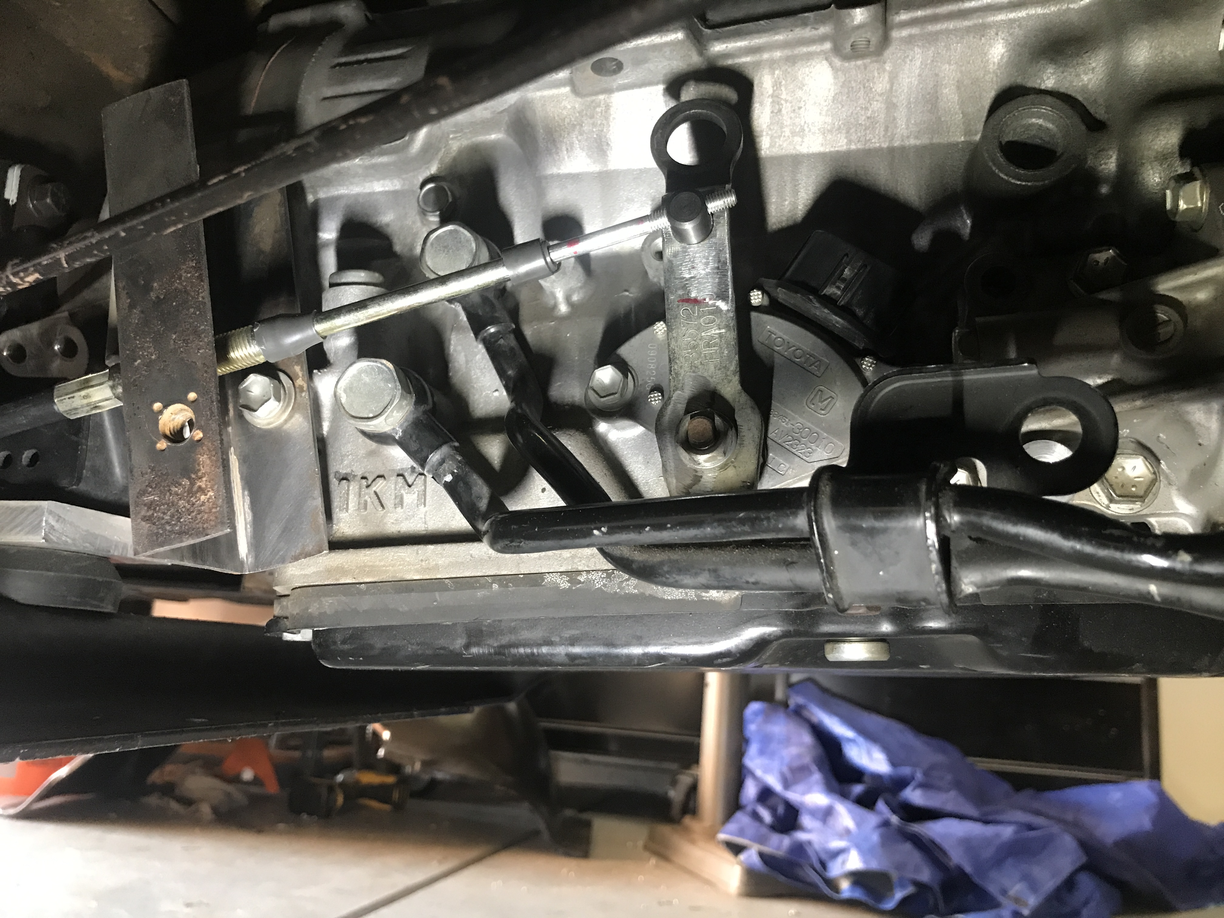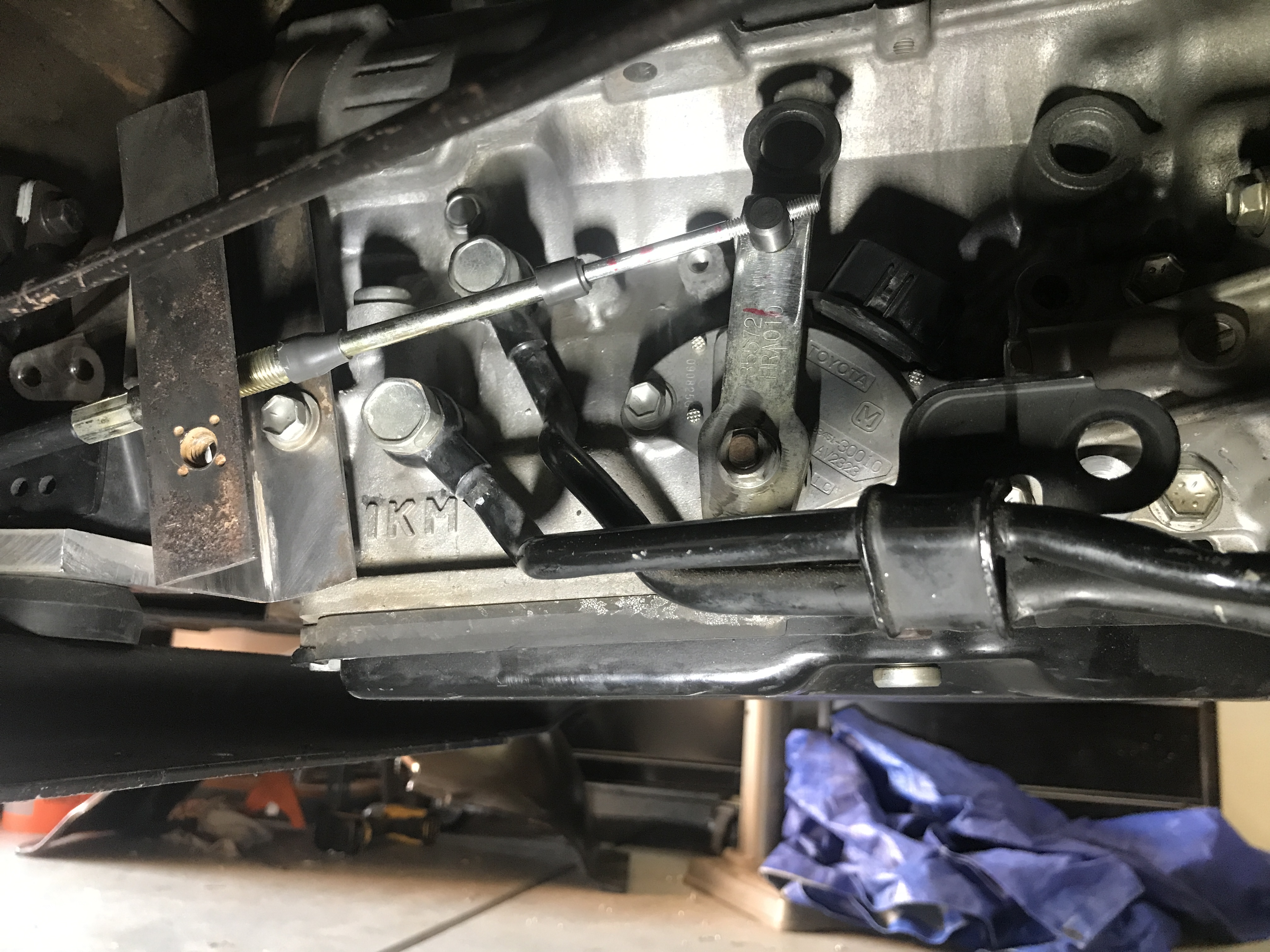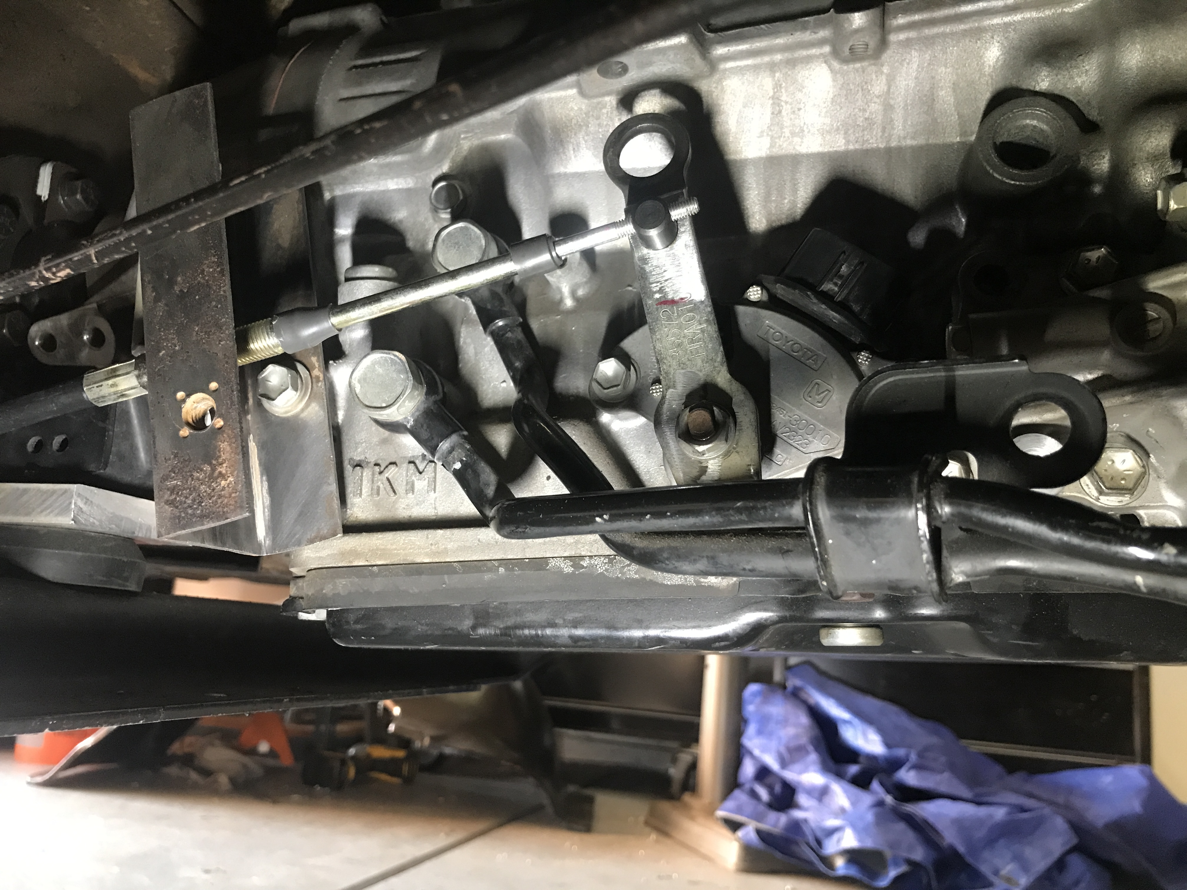 This is using B&M push pull cable designed for a dime a dozen American GM Turbo TH350 three-speed transmission