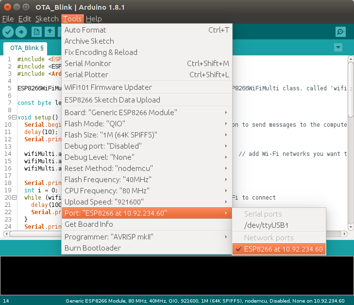Arduino IDE with OTA (over-the-air)