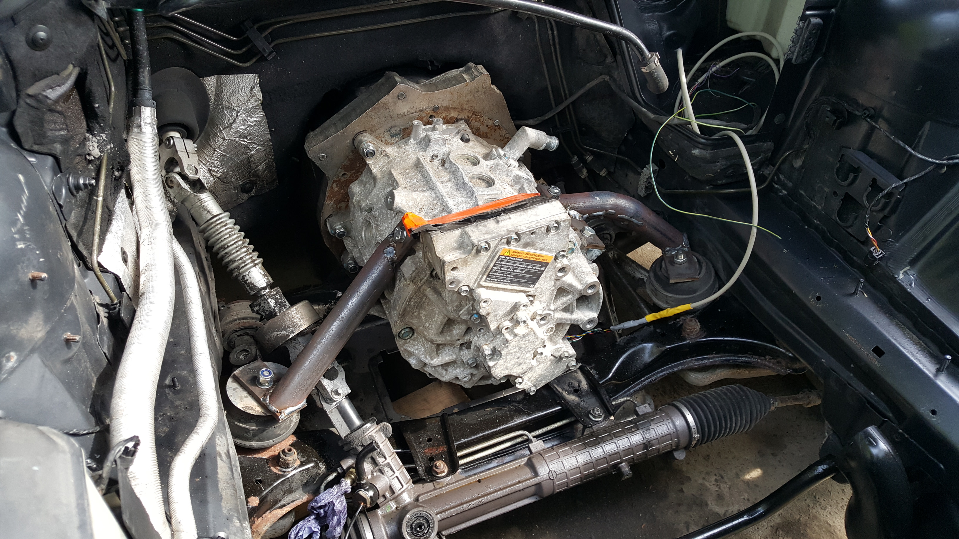 Motor and gearbox mated up and tested. Time to get it back in the car.