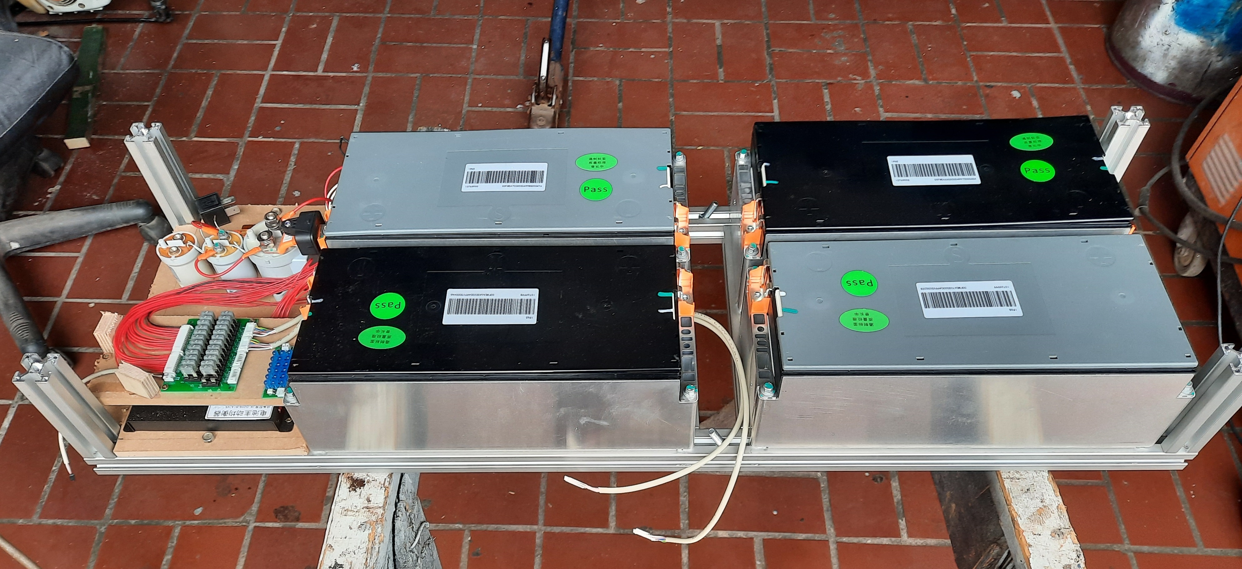 The battery boxes are coming together nicely and at least the front box is nearing completion: I used 30x30mm aluminum profiles for the outer structure which will later be embedded in a fiberglass shell. I can reuse a lot of the original bus bars from the MG ZS although some custom cables are required and right now, I only have to wait for some cable lugs to arrive to finish the boxes. (Don't mind the prototyping particle boards, they will be replaced