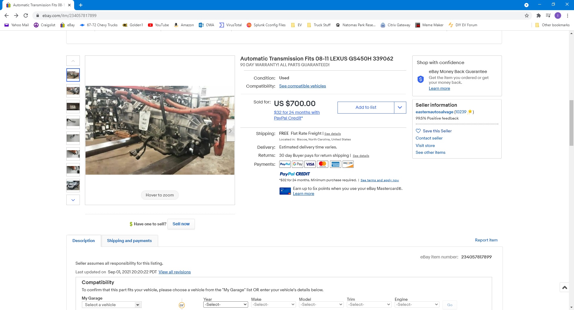 Here's what I learned about the Lexus GS450H transmission which I bought for $700 dollars well $761 if you count tax, FREE freight shipping. (freight shipping means they will not ship to your residential address aka your house, you have to provide a commercial address, in my case they required a loading dock and or a fork lift) It pays to have friends with such things