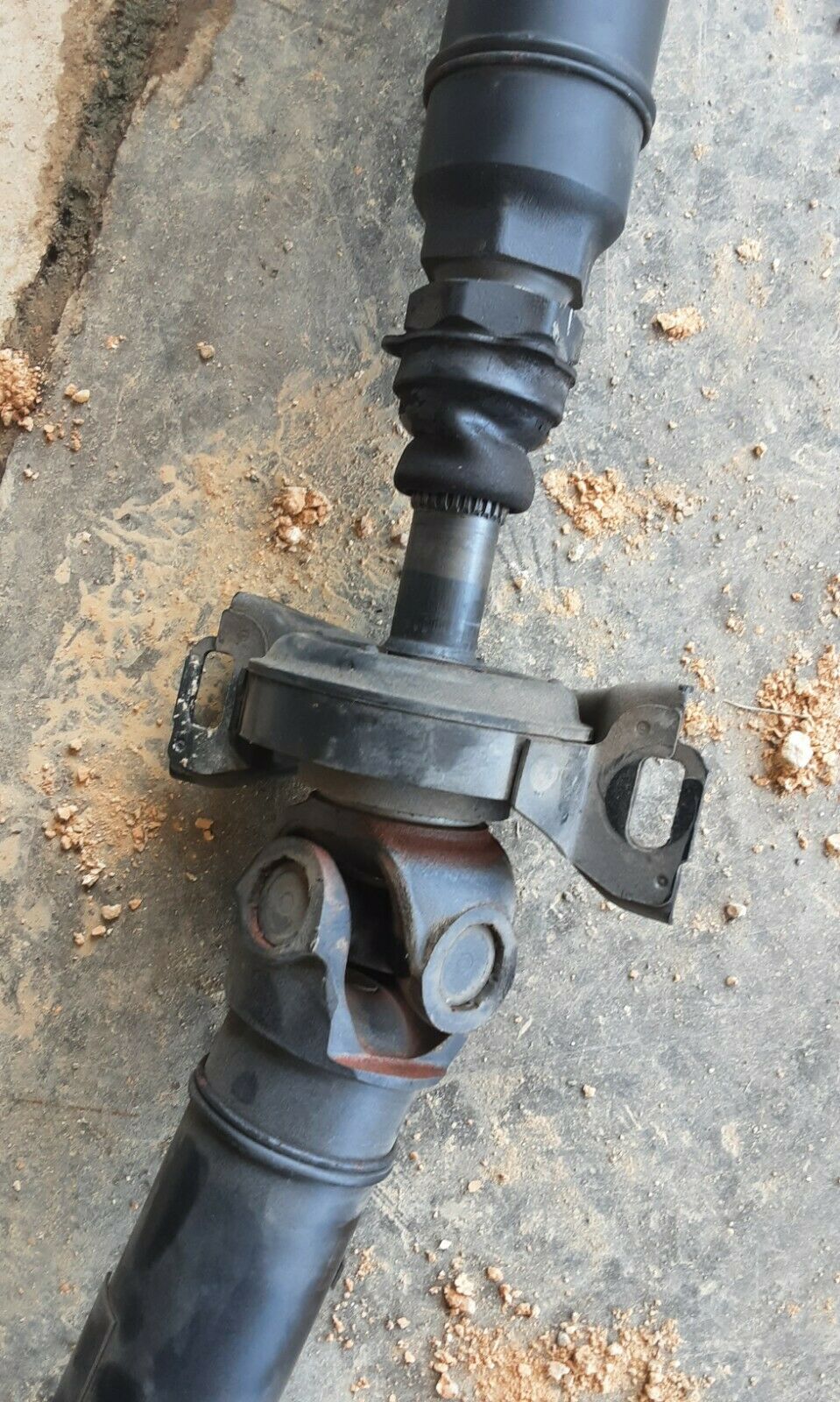 4. I decided to buy the drive shaft as well for $125, since being a Chevy guy it looked way different than what I am used to seeing ie universal joints, plus it is a two piece drive shaft which slides in and out of itself as the vehicle articulates over bumps, this prevents damage to your transmissions output shaft and bearings, also the drive shaft has a center support so that the transmission does not have to carry the weight of it.