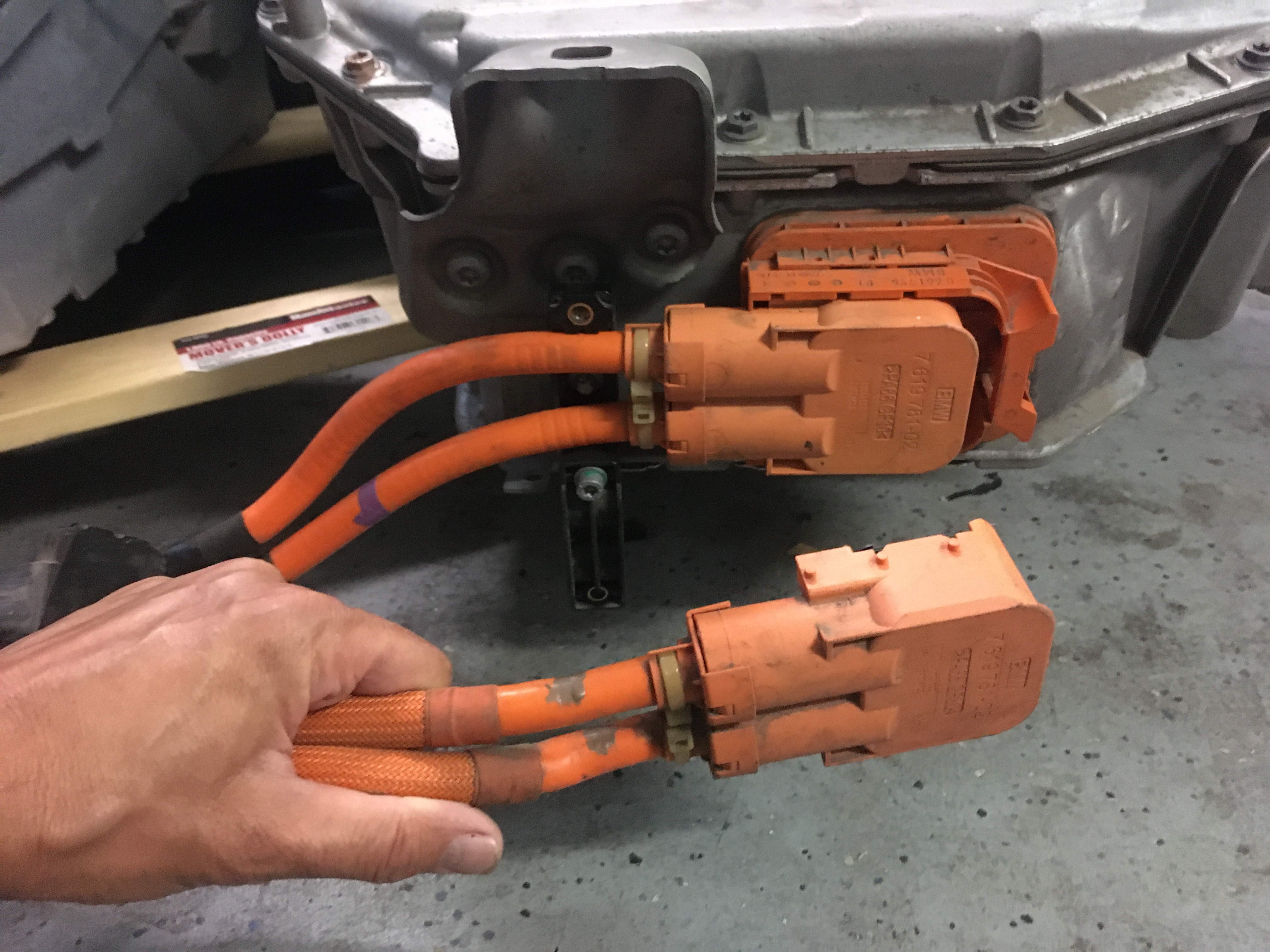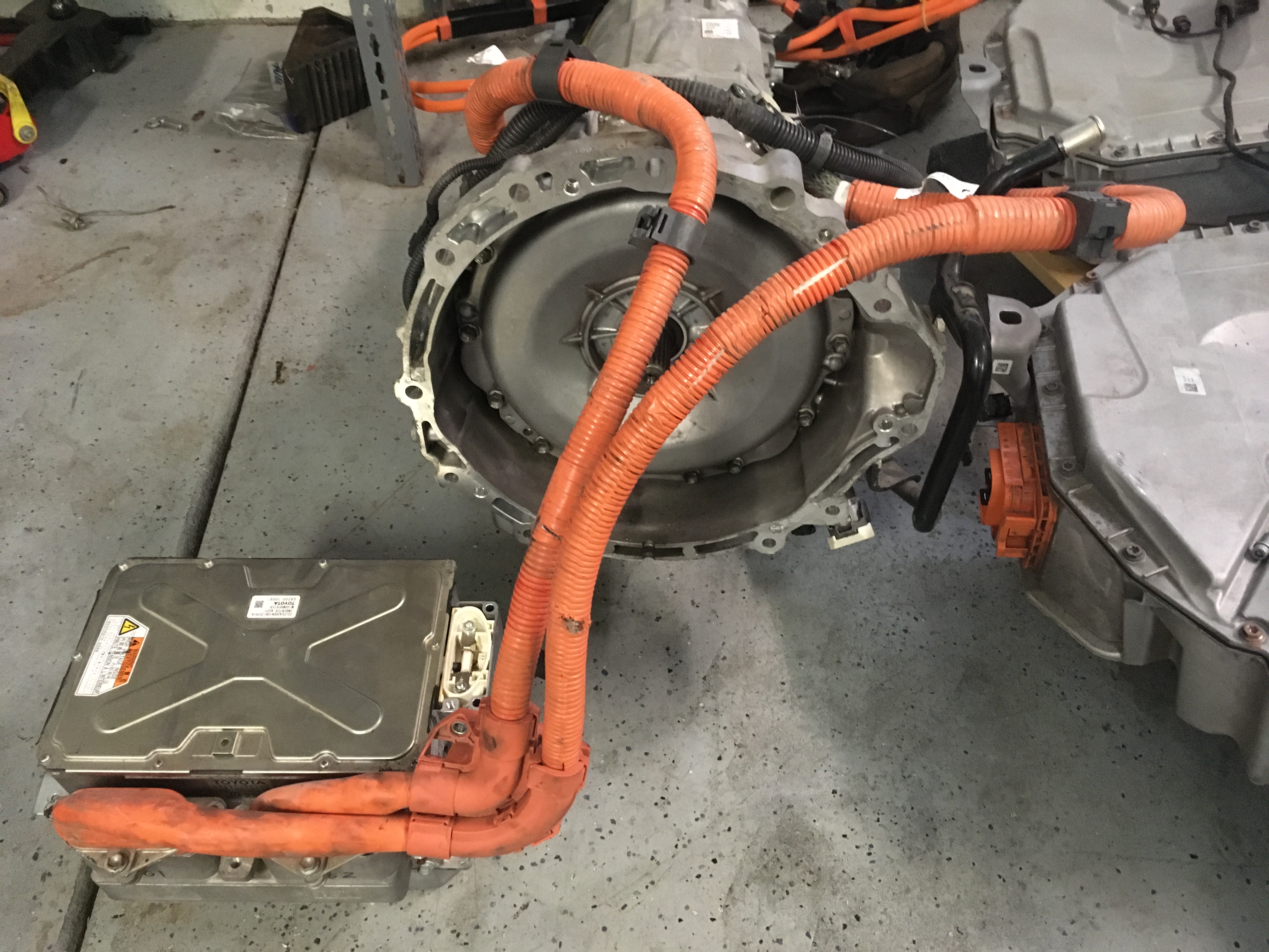 2. Get the two orange high voltage (360 volts) wire harnesses they connect the transmission to the Inverter. I have seen them listed separately on eBay for $100 bucks a piece, if you do not get them with your transmission you will get nickel and dimed to death.
