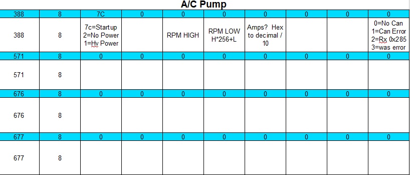 Well after having an ac pump sitting around for ages meaning to log an outlander but never getting round to it some data in the outlander heater thread cracked it! most can logs i have found round the web have been missing many messages so thanks to the people in that thread. it appears to run quite easily requiring only 2 messages to get it going.