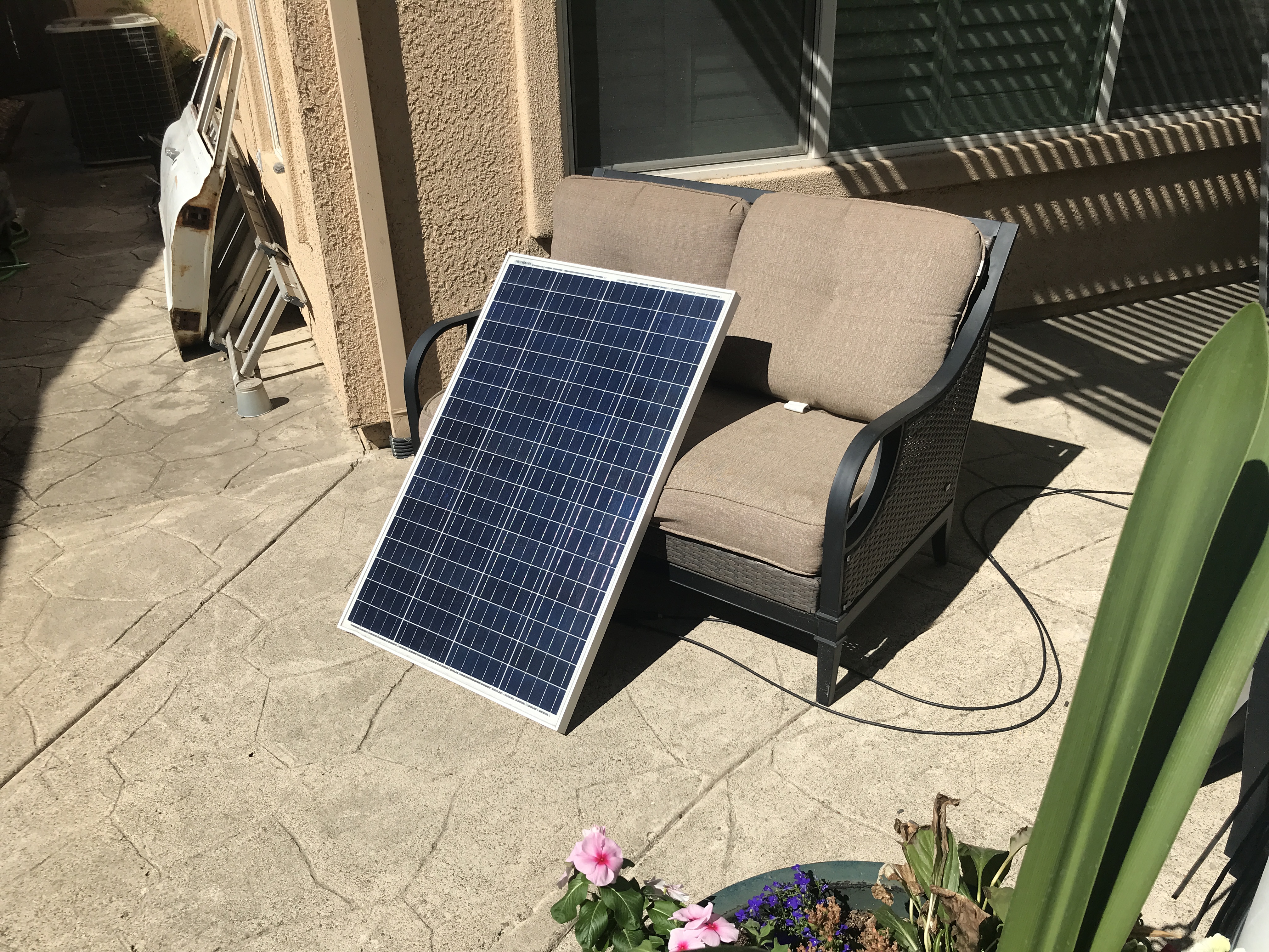 Full Disclosure: yes I made a part time job of it, as I kept moving it manually to ensure full sun catchability, but that was not the point, the goal was to see how wide I could cast this single 100 watt 12 volt panel net and how much sun I could capture