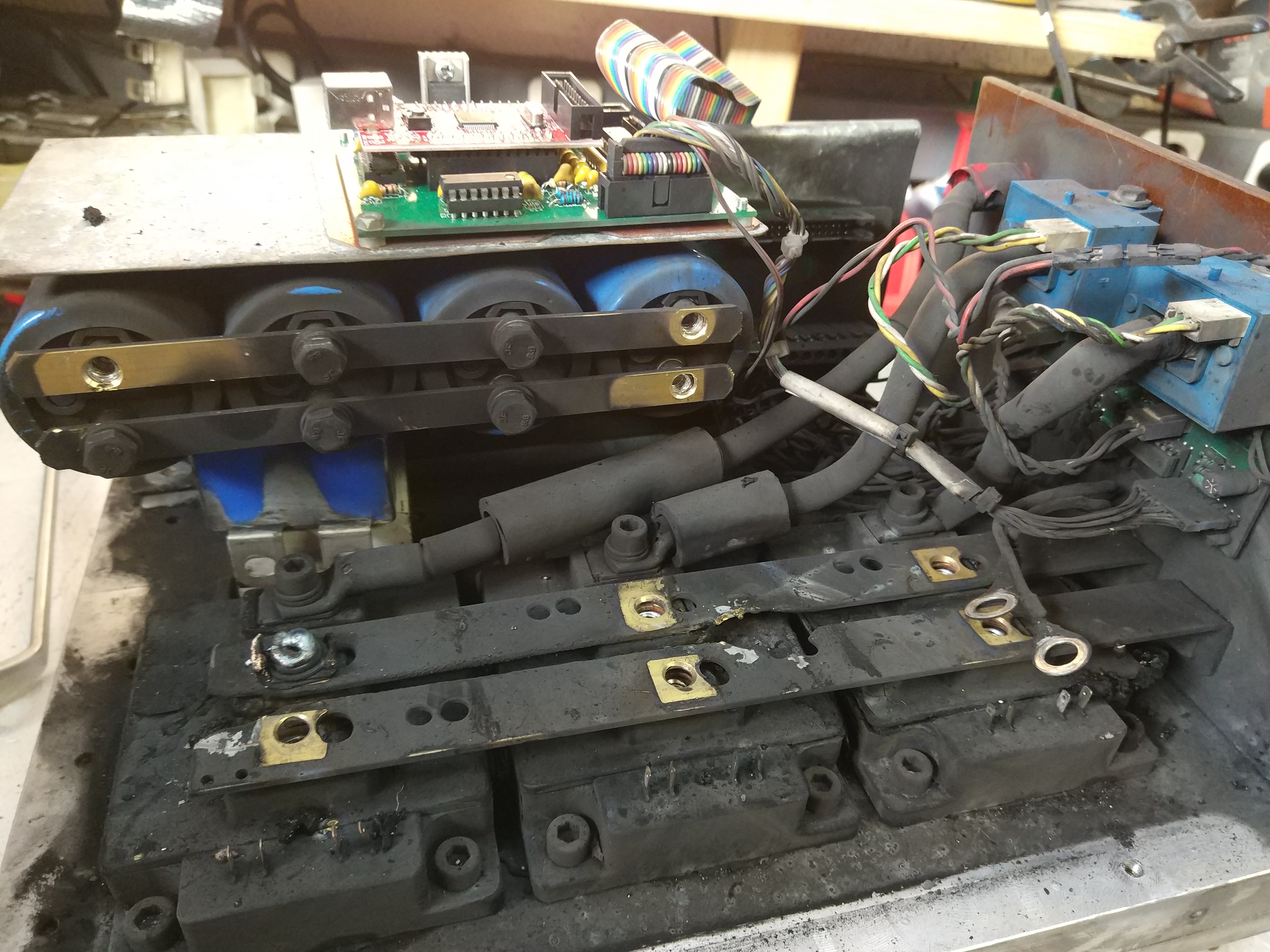 The intended assembly: Yes those interleaved tracks were waterjet cut and painted. They were a lot of work, but in the end no EMI to bother the brain and i havent had IGBT dead since!