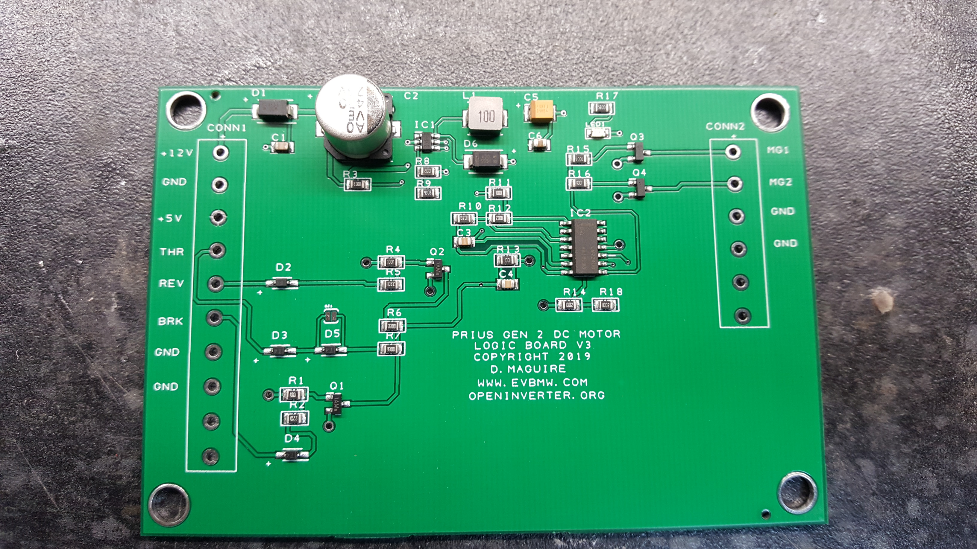 I got PCBs made from Damien's Prius Gen 2 DC pwm design. I populated the components and checked all connections.