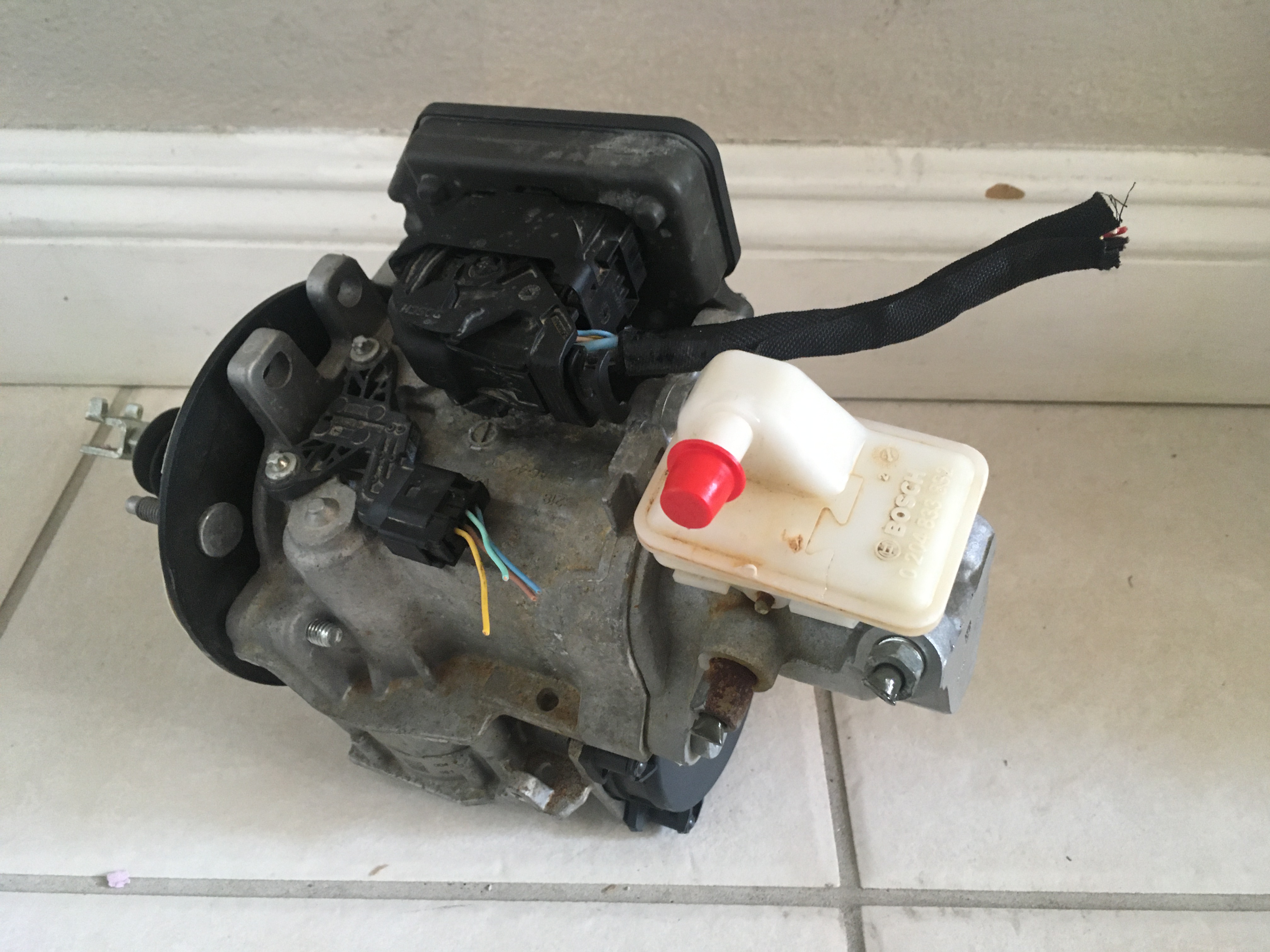 highly recommend trying to score one with the wire harness pig tails, there are a total of three, one big main one for the brain module, one medium sized one for the pedal sensor, and yes a third little one (optional) for the fluid container level reading thingie (mine did not come with one in the pic below)