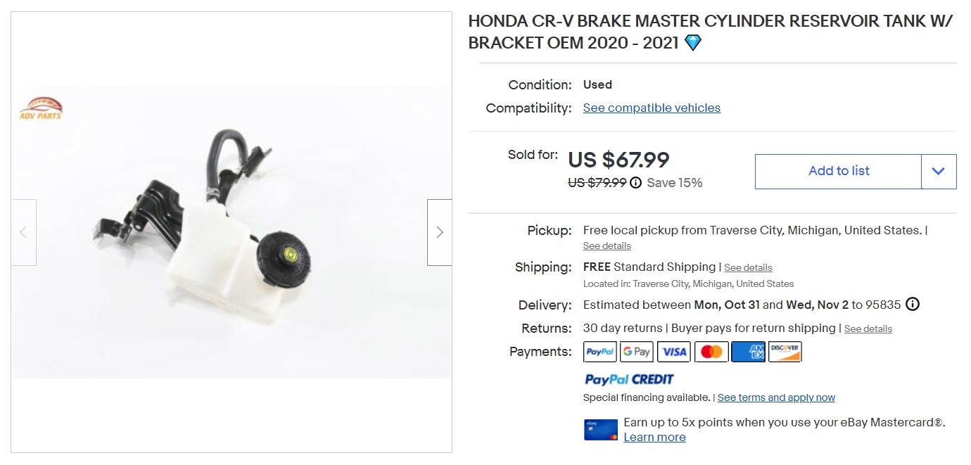 indeed, and I was entertaining replacing the Honda CRV master cylinder / reservoir combo with one from another rig but since these cars are so new we would have to buy these new from the Stealerships, so I found this Honda CRV remote reservoir on eBay and since I don't like money, I made an offer and $60 bucks later it was at my doorstep