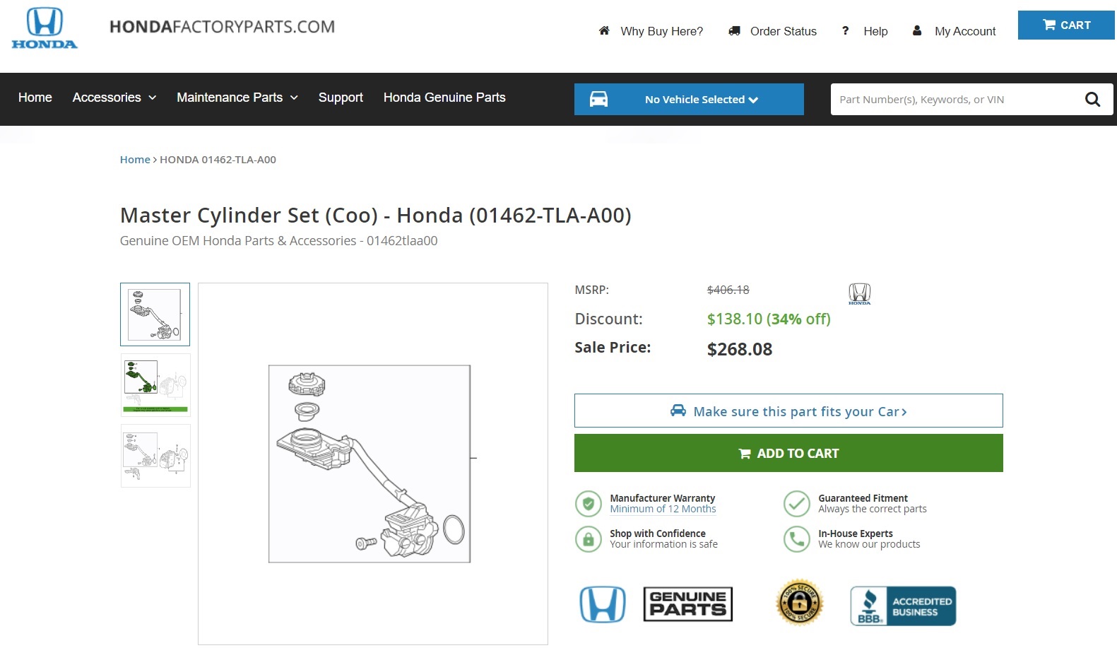 anyway after 15 minutes of attempting to order a part without a VIN the gal there said Honda does not make rebuild kits and for me to try NAPA, well the funny thing is I went to NAPA first and they did not even sell the part cause it's too new, and oh by the way a brand new master cylinder will set you back $450 and it's on back order