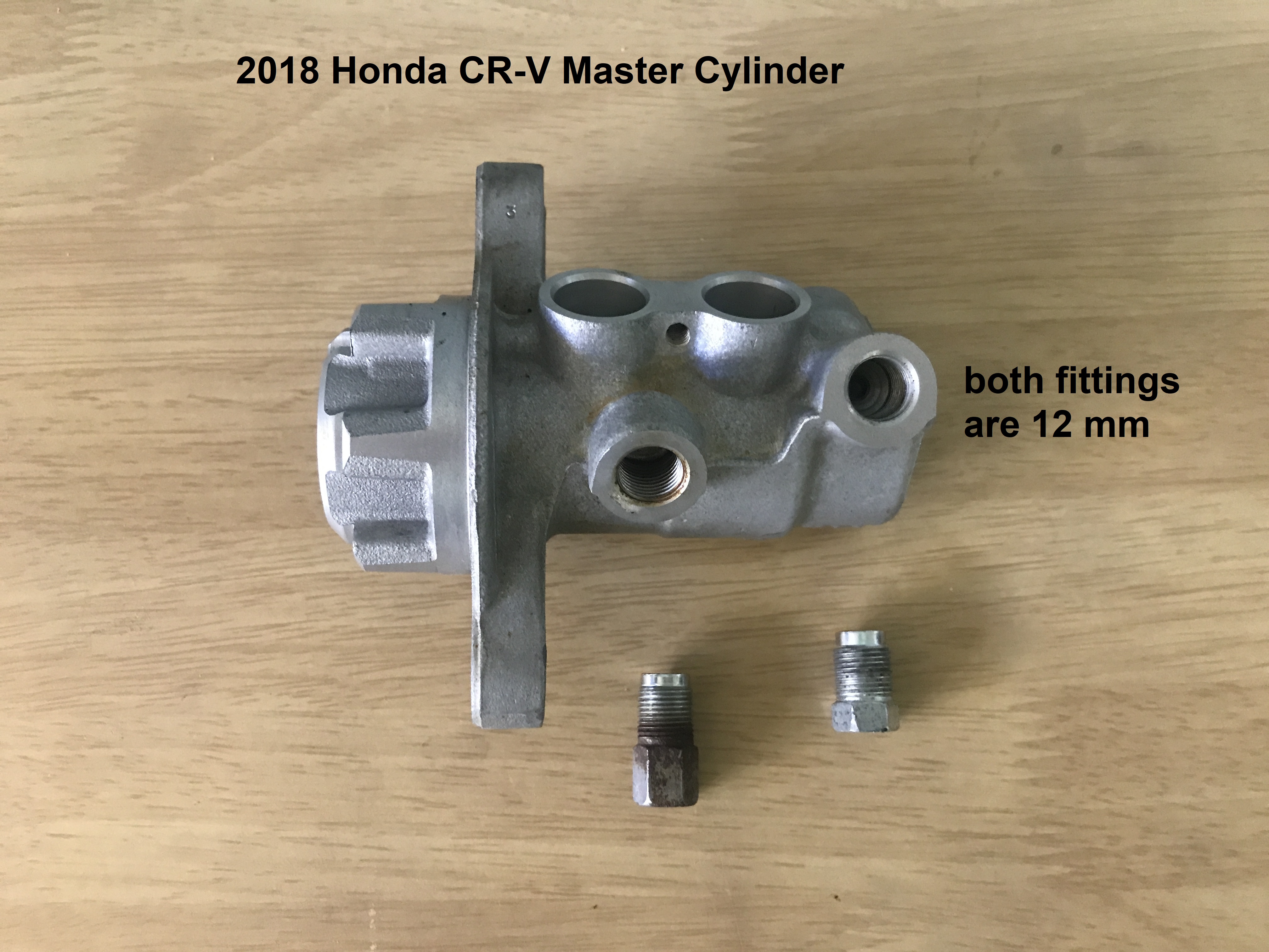 if you're lucky, your used CR-V master cylinder may come with the fittings still inside of it, and if you are supper lucky they lines may have been cut just far enough from the fittings to get a hack saw blade in there and gently cut off the jacked up ends in order to get the old tubes out (less fortunate see my Gen 2 thread, ha ha)