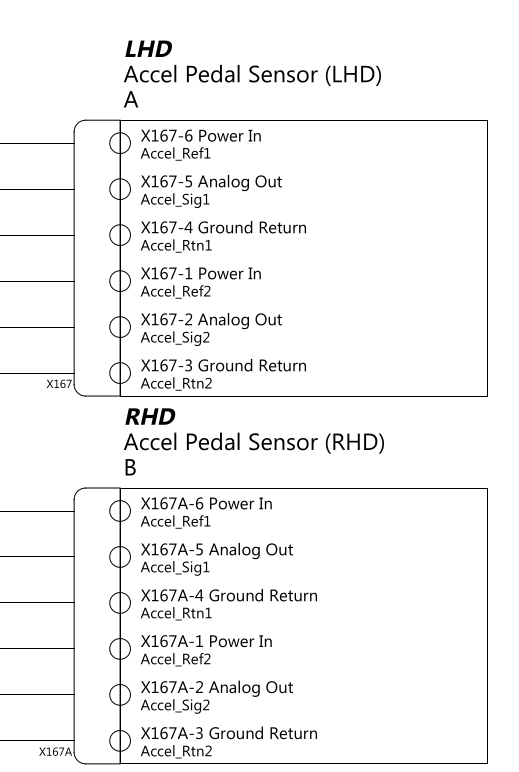 The Tesla M3 service manual is out there on the Internet. You'll likely have to torrent it (but I couldn't possibly comment). It has wiring diagrams which show the wiring of the two types of pedal: