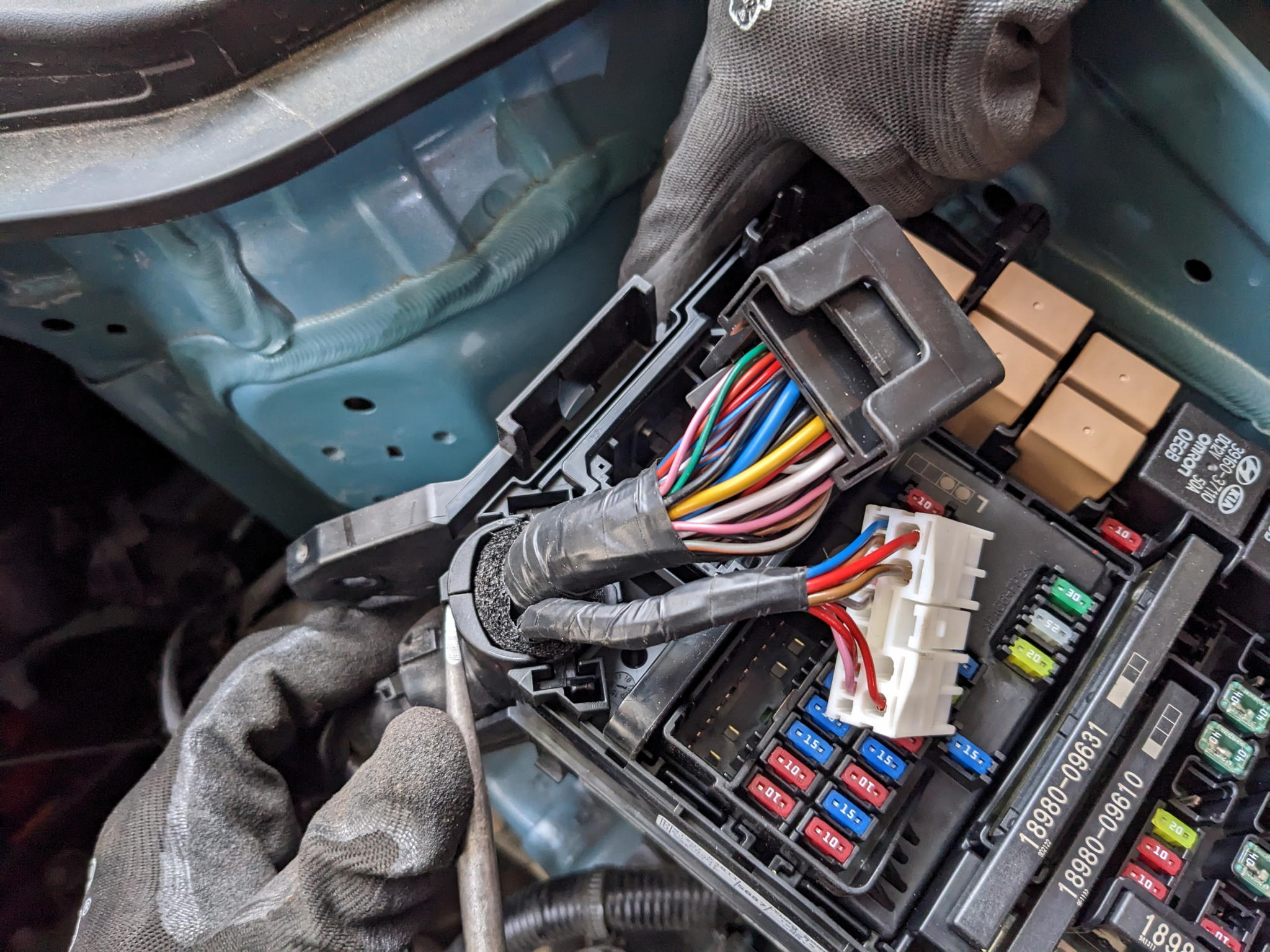 The EPCU stack connects to the car via these two plugs in the engine bay fusebox only, which is expected but still good news to confirm it.
