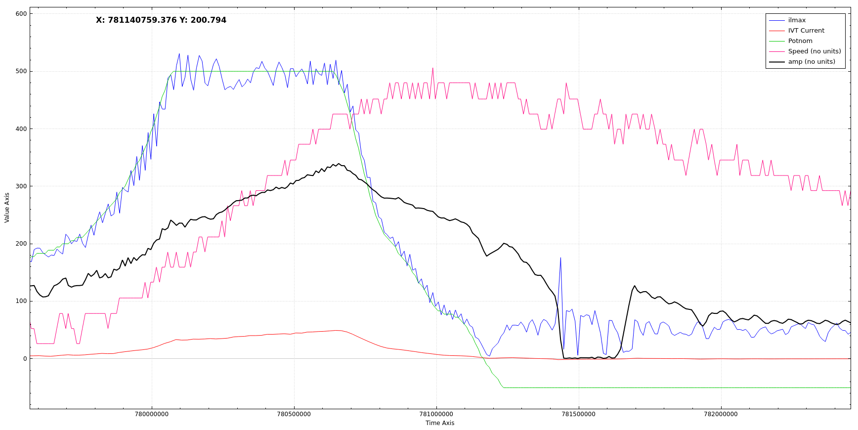 3) Choose a value of current proportional to desired torque (for example -200A to +200A).