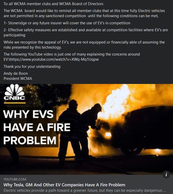 Here's the message that went out to all clubs. It bugs me that a hybrid with more battery on board than my car would still be allowed, simply because it's not 'fully electric'. Maybe I should mount a 1cc model airplane engine with a propellor on the back and call it a hybrid range extender?