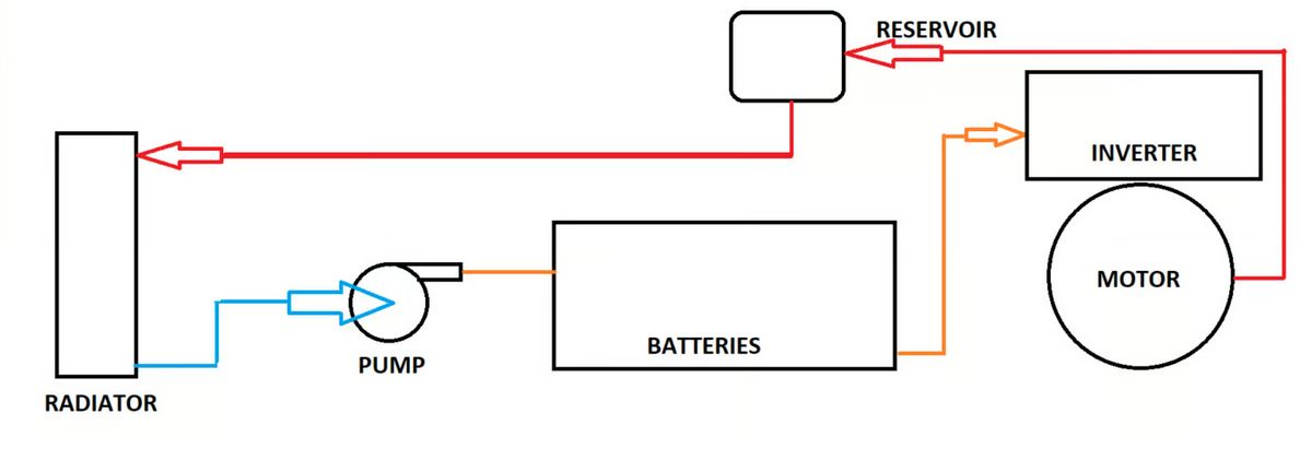 I will be maintaining the liquid cooling. I grabbed an electric booster pump from Davies Craig and a reservoir from a Chevy Bolt. Planning to run the loop like this: