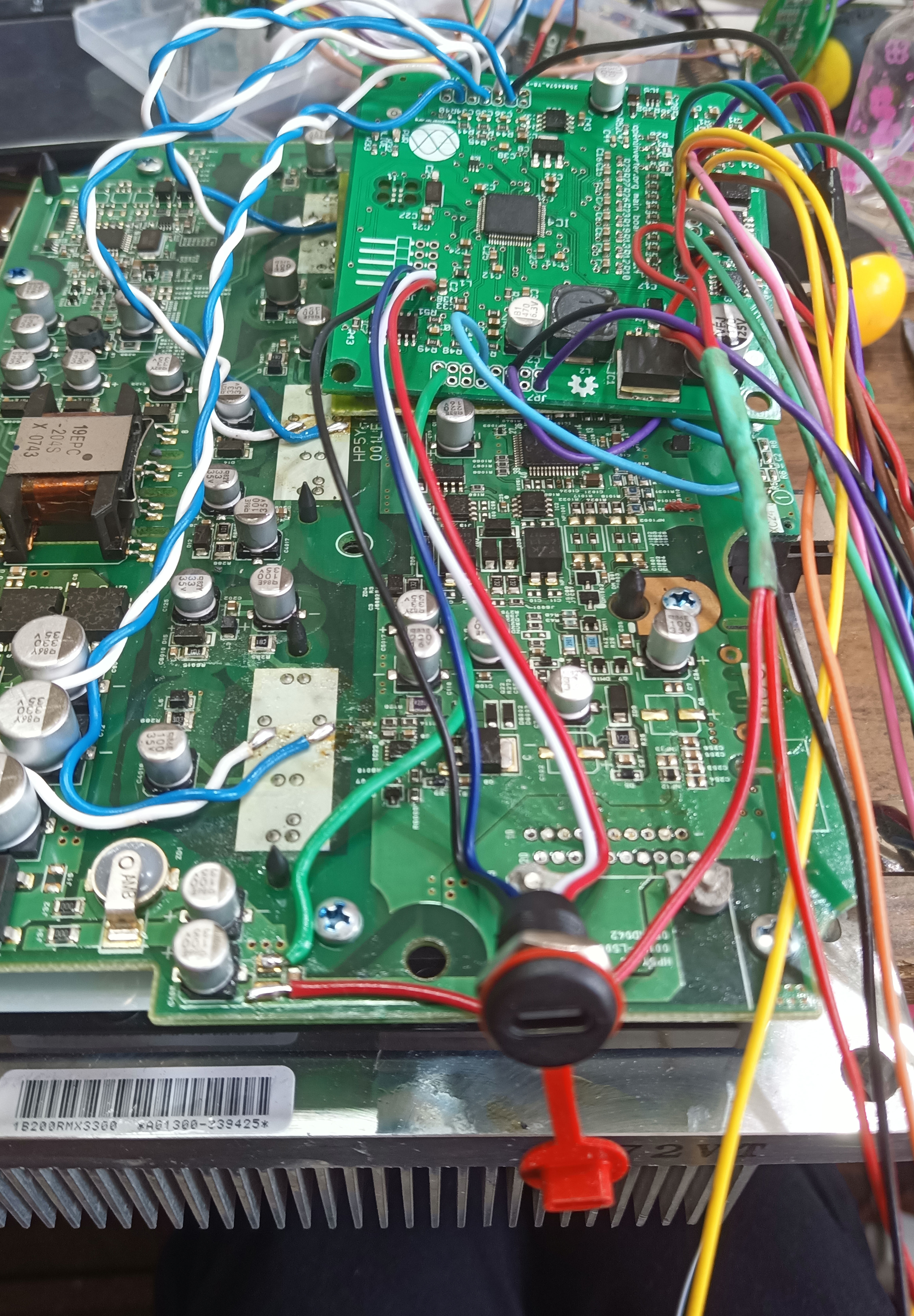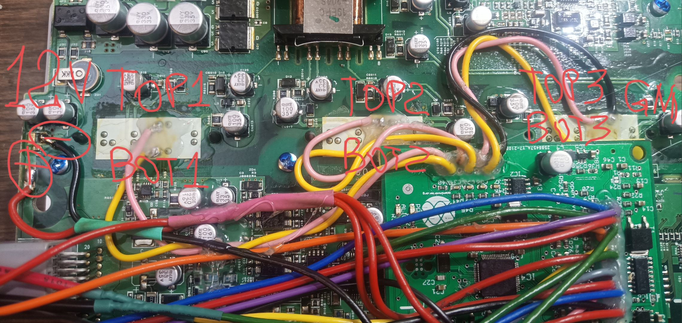there is only one wiring for connecting current sensors (they receive power from the native board of the inverter), and only two wires for each power module to control the PWM relative to the total GND, + two wiring for 12 volts of the native board. this is enough for high-quality operation of the inverter.