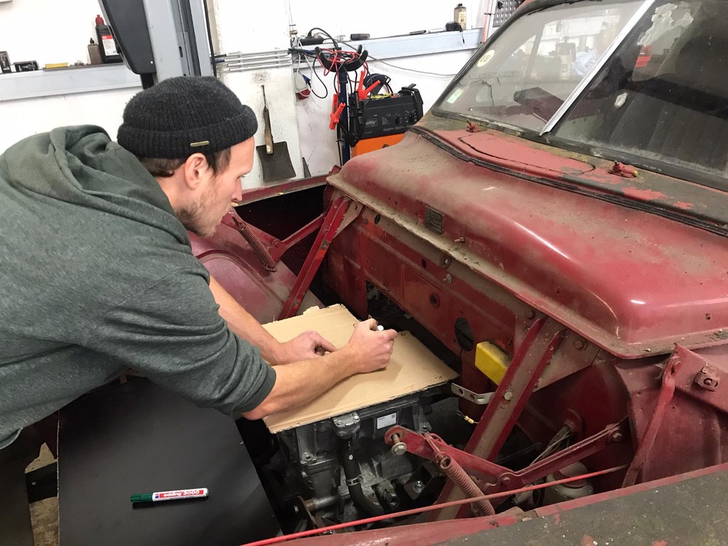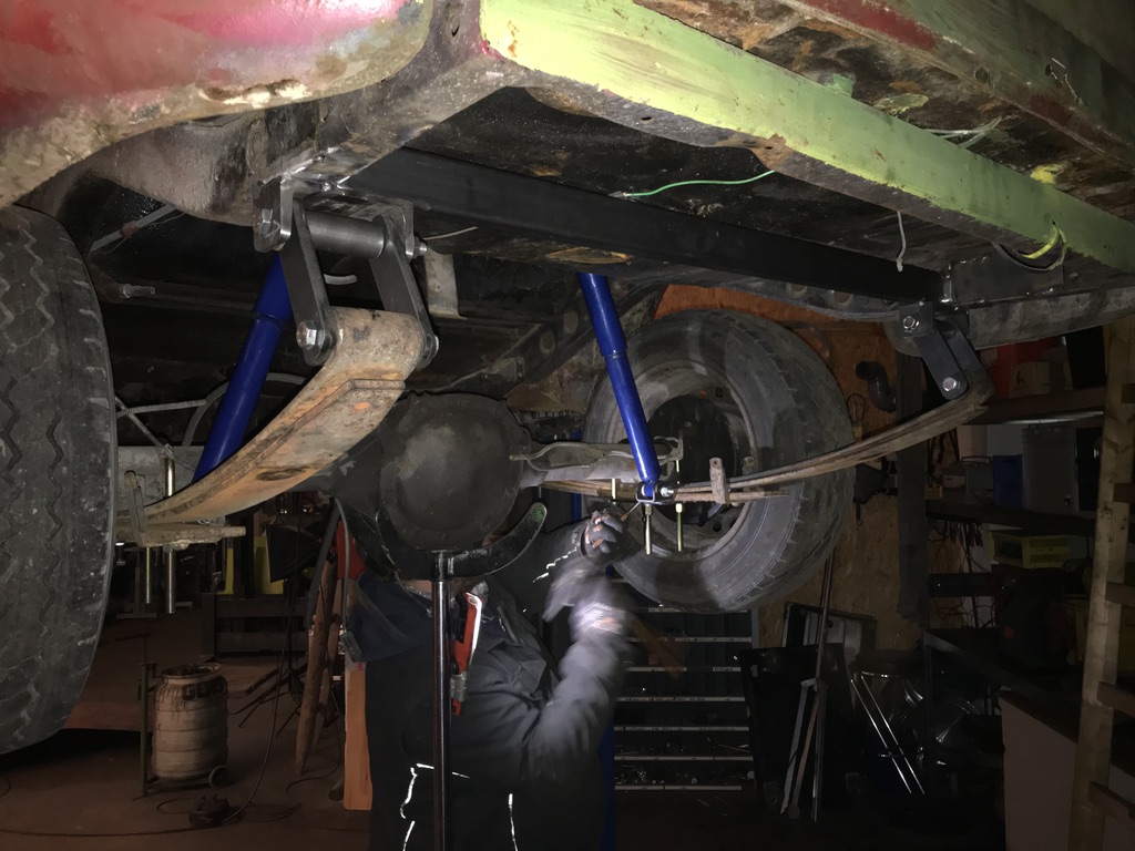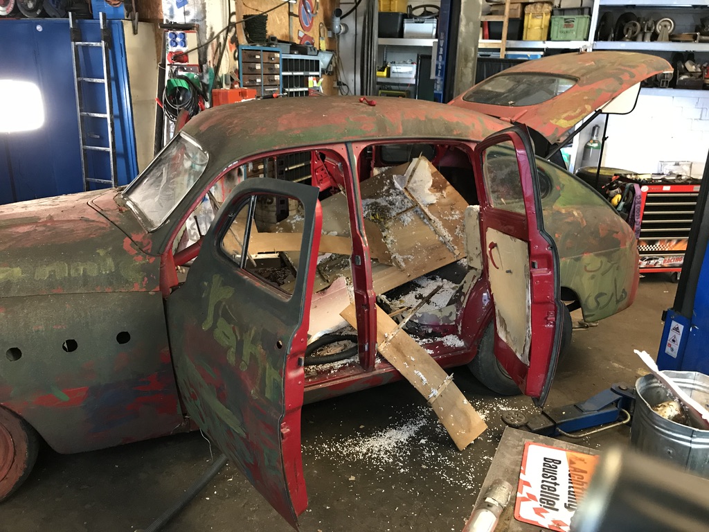 We found it on the scrapyard and thought it is too beautiful to let it go back to mother earth. And actually the material isn't too bad under the bonet, frame/structural parts are good. The car is more or less just a shell, it did't have a motor, gearbox, driveshaft or whatsoever, just a bunch of ratshit we already cleaned out. We already rebuilt the rear leafspring suspension, welded together some preliminary motor mounts and are currently testfitting parts of the drivetrain. We still don't have a driveshaft and gearbox, despite the rearwheel 9:1 diff wich seems to be from a chevy s10.