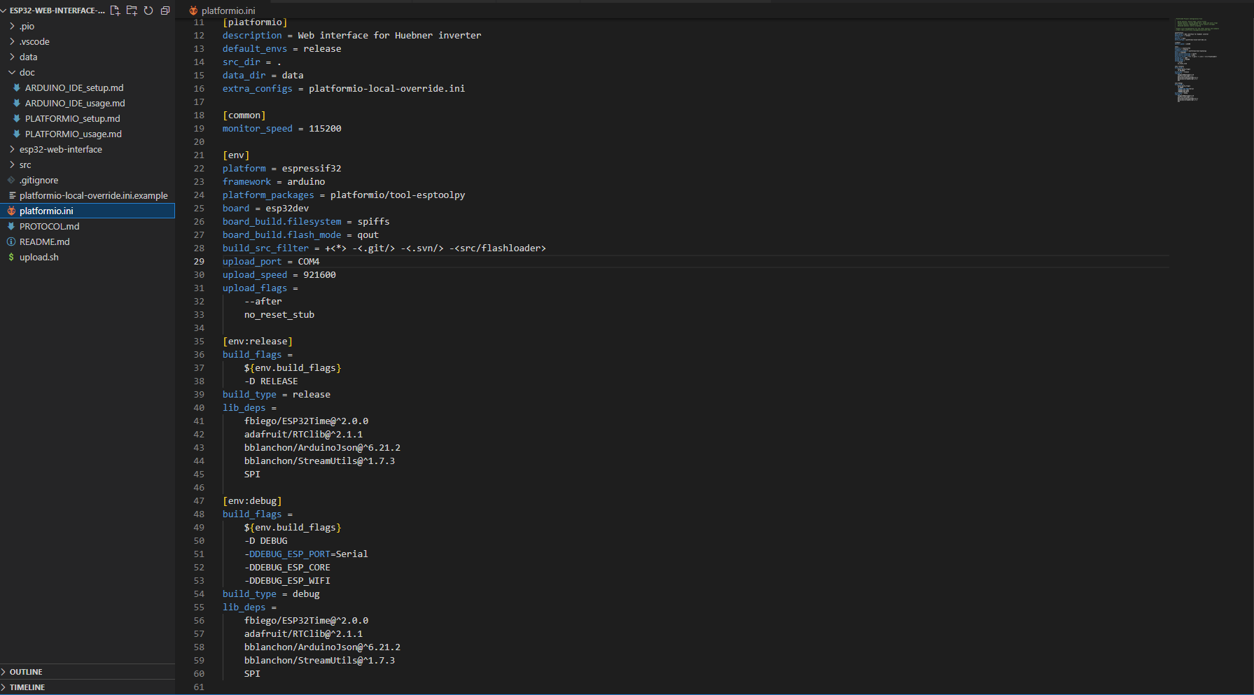 Earlier I did the programming with Arduino IDE 1.x. (FS / sketch). Just installed the python / platformio environment and got the "pio run --target upload" and "pio run --target uploadfs" to work. Both successfully download serial to the ESP32 (after editing the platformio-local-override.ini) but unfortunately the behaviour of the ESP32 is identical. No wifi and the serial monitor shows identical.