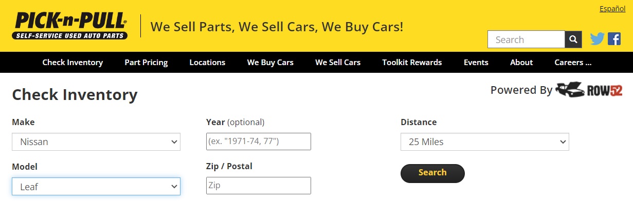 Interesting!... in the southeast, we more commonly seem to have Pull-A-Part - conveniently, one of the 3 Atlanta area yards is a few miles from my house. About 6 months back, the ATL South yard did have a LEAF, but oddly it disappeared quickly and I never got to pick over it. The South yard is on the opposite end of town, so it's not so convenient to trek down there. Sadly, I haven't seen them acquire another LEAF since then, but I'm on their list to text me when they get another. I've had luck scoring my 2013 Prius inverter from the North yard and a million other parts for my ICE vehicles over time.