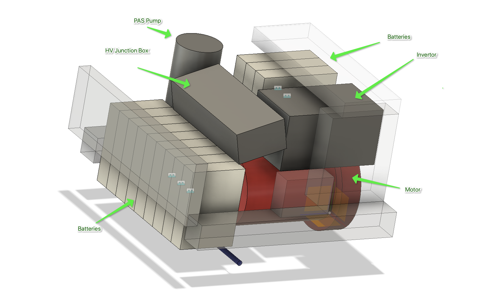 The slightly opaque parts represent the engine bay components.