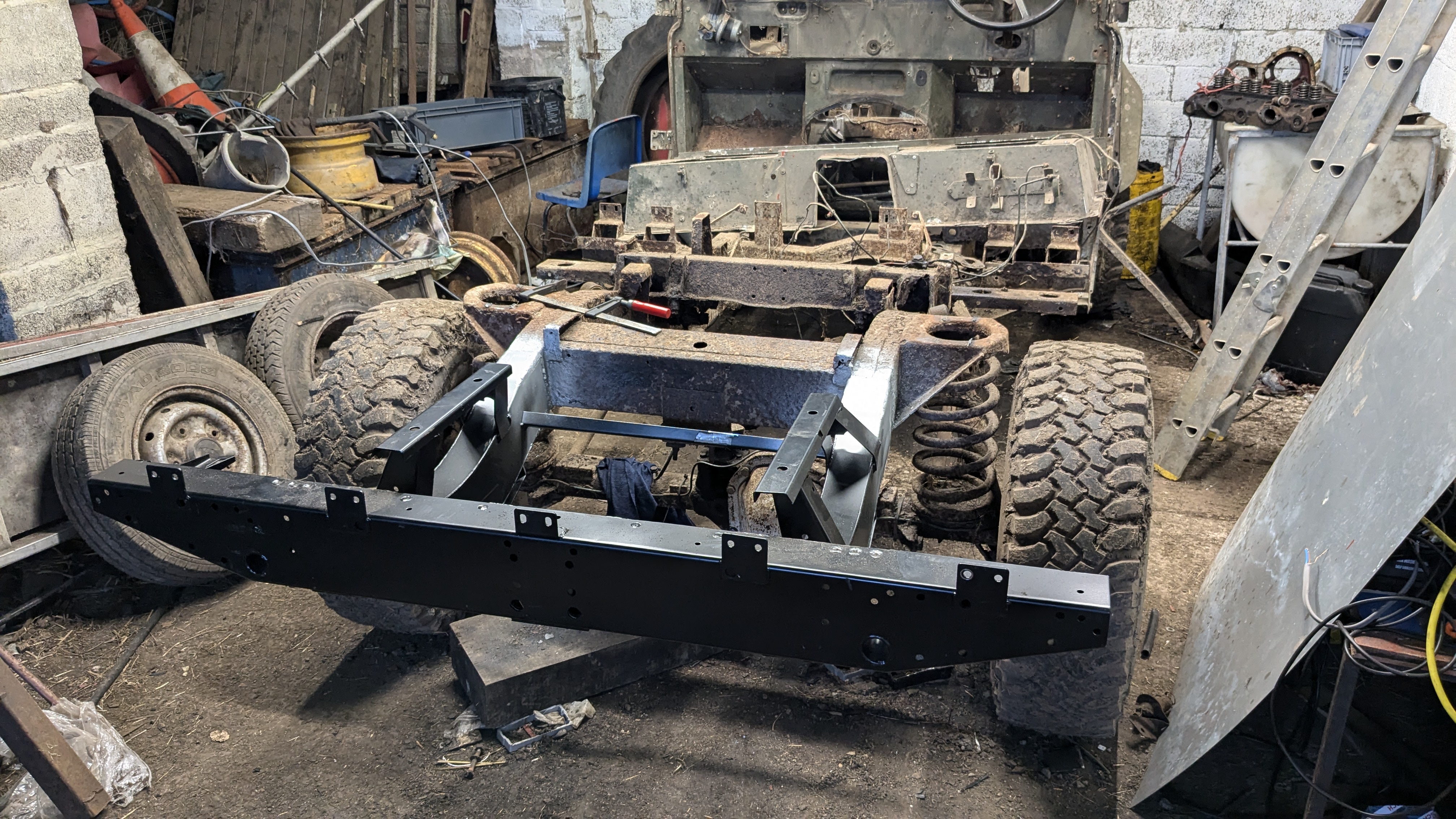 Lots of welding done this month. Rebuilt the bulkhead outriggers, replaced the rear body outriggers, a few more patches done.