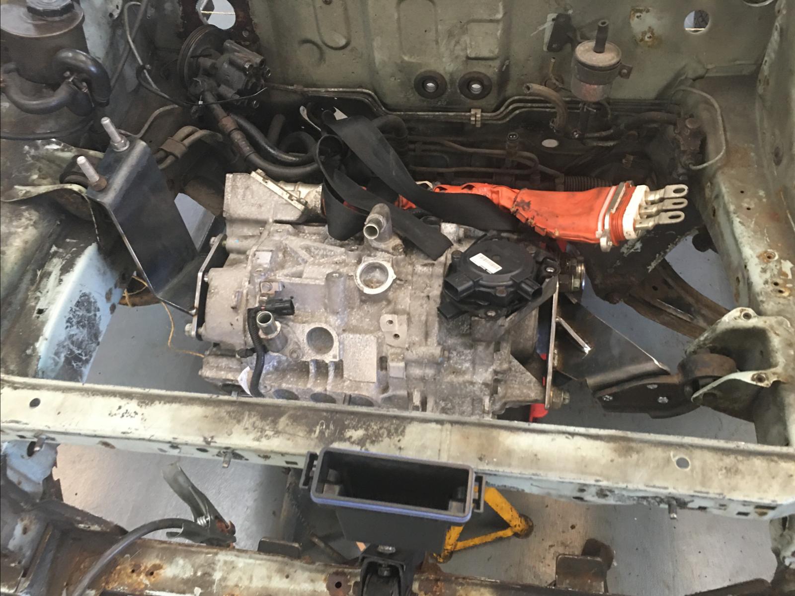 We will attempt to run the motor through the leaf gearbox and use the original driveshafts from both vehicles to make temporary shafts, similar to Shane from Performance EV’s Porsche 911. We will then have custom drive shafts fabricated.