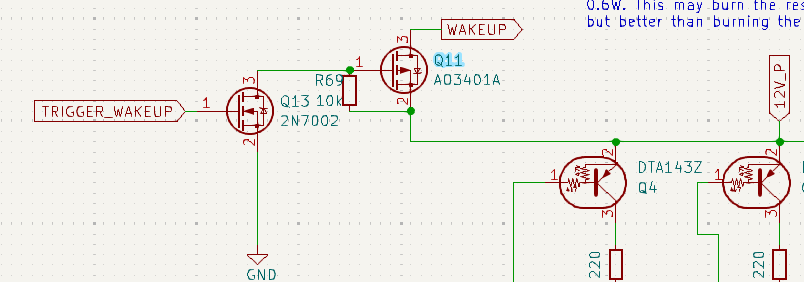 It's really a pity that we managed to place the transistors at this dangerous position. But the good news is: The Q11 and Q13 are only needed for controlling the WAKEUP line by the controller.